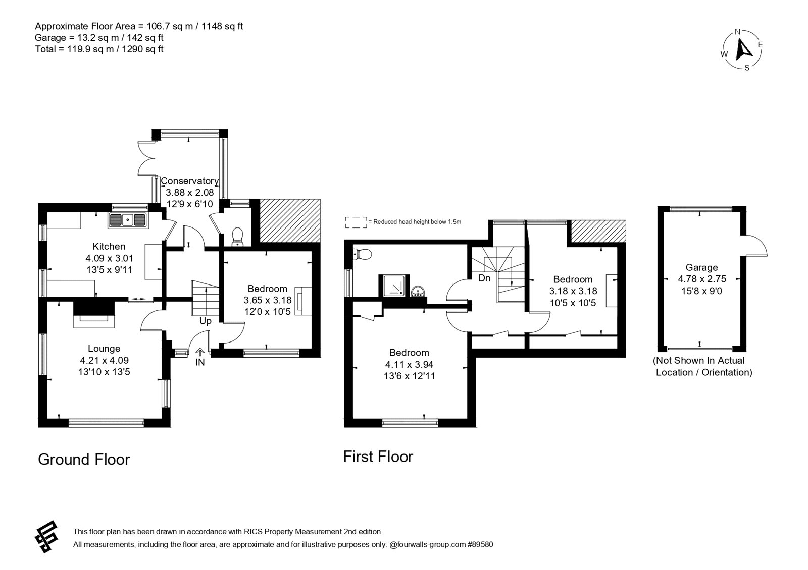 NB: 4 Little Meadows Cottage is responsible for the portion of roof to the rear that extends over the kitchen and eaves storage of the neighbouring property. This area is shown hatched on the floorplan and is technically referred to as a “flying freehold,” as it comprises part of the house that overhangs another property. Bidders should consult check with their lender and solicitor before bidding.