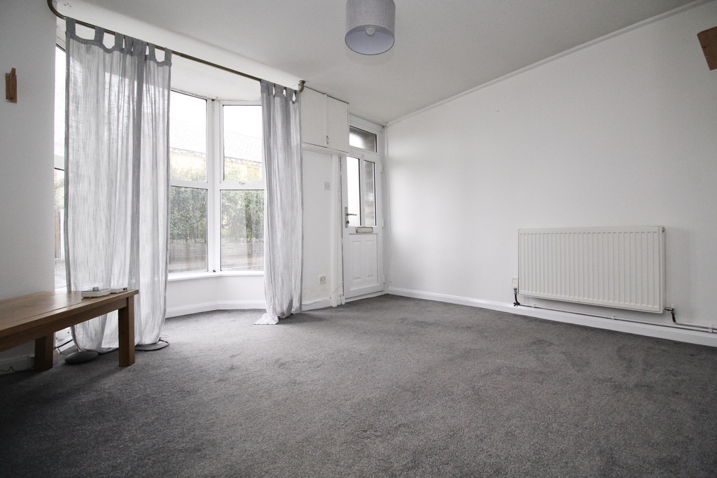 - Bright and spacious living room with a large bay window allowing ample natural light and offering direct access outside.