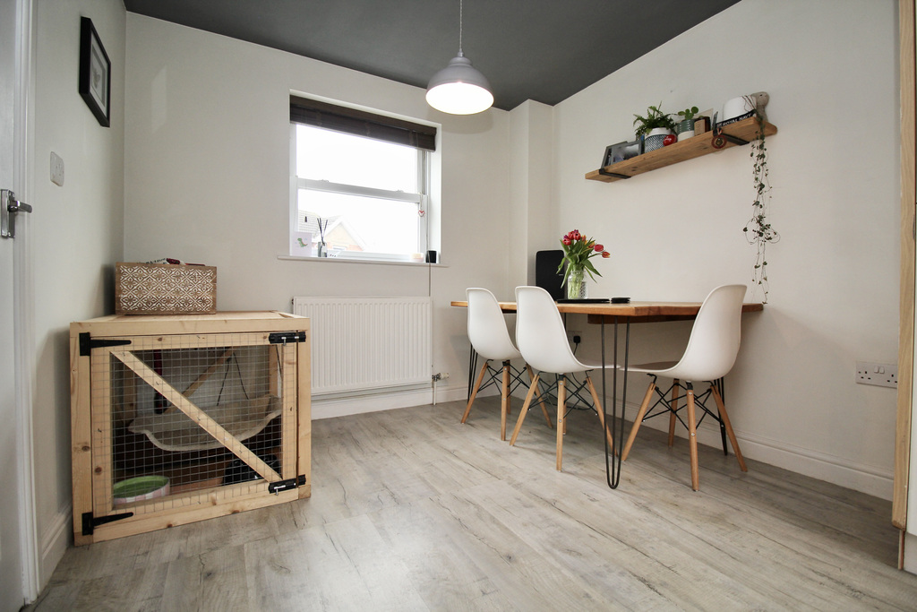 - The bright dual-aspect kitchen/diner is a welcoming and sociable space, offering ample room for a dining table and chairs, with direct access out to the garden.
