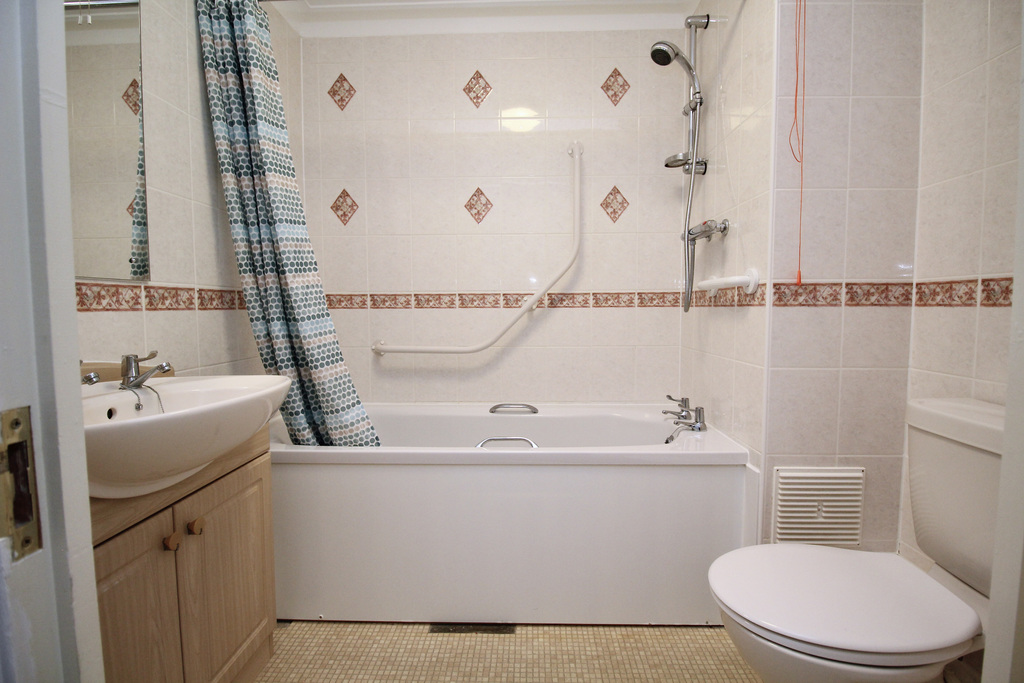 - Fully tiled bathroom, having all the features of a modern wash room comprising bath with shower over, wash basin and WC.