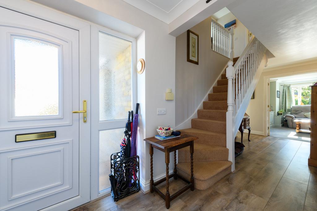 - Comfortable first-floor living with two further double bedrooms featuring useful eaves storage, complemented by a stylish family bathroom and a handy airing cupboard