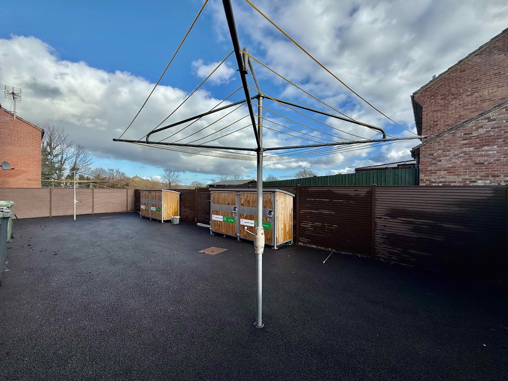 - Views over fields and towards Glastonbury Tor at the rear from the communal gardens with rotary washing lines and numbered bin storage are available, and with ample off road parking to the front.