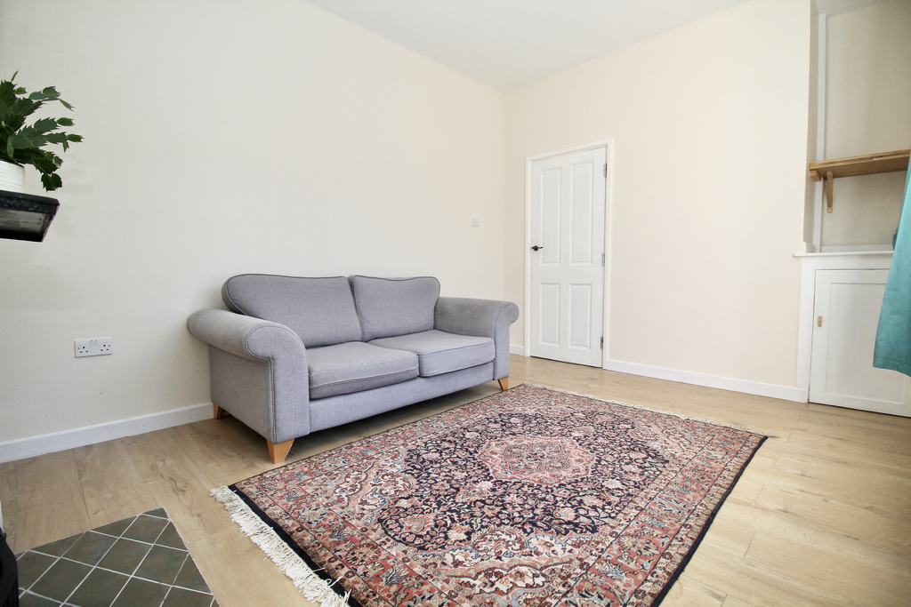 - Bright and elegant sitting room featuring a large sash window, period-style cast iron fireplace, and wood-effect flooring, blending charm with a clean, modern finish.