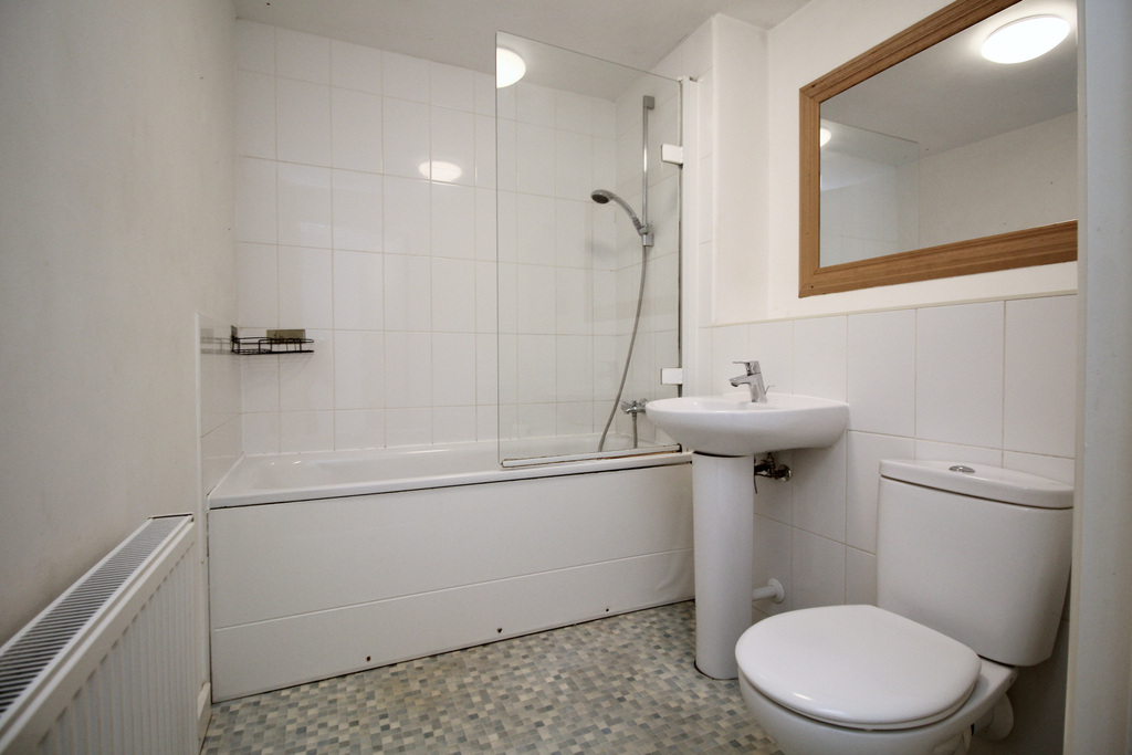 - Neatly presented bathroom comprising panelled bath with shower over, wash hand basin and WC.