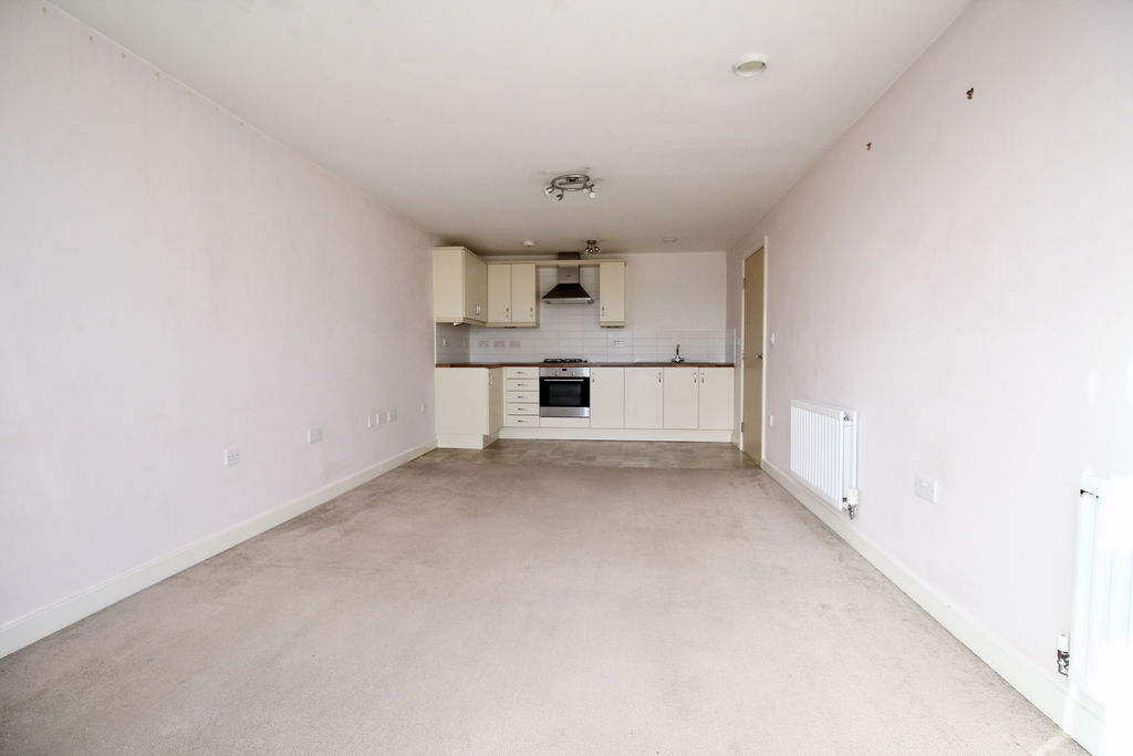 - The open-plan kitchen, living and dining space enjoys a bright and welcoming feel, with a contemporary fitted kitchen at one end and sliding doors opening onto a balcony at the other.