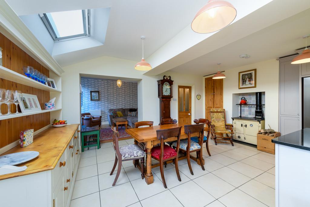 - Superb kitchen, dining and snug area, featuring handmade shaker cabinetry, granite worktops, Neff appliances, underfloor heating and a Rayburn set into its tiled recess.