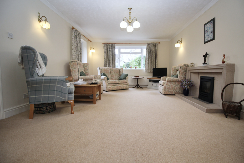 - Impressive open plan sitting and dining room with triple aspect and feature fireplace.