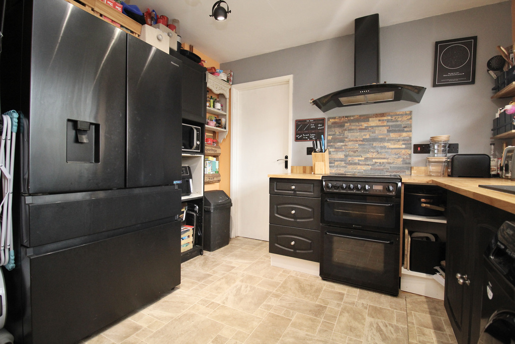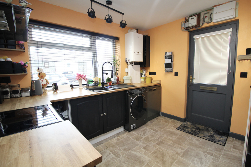 - The kitchen is fitted with a range of wall, base and drawer units, with space for under-counter appliances and a fridge/freezer, together with a built-in cupboard and door to the side of the prope...