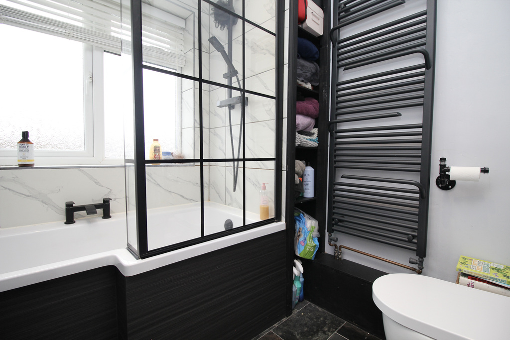 - Serviced by the family bathroom, comprising a bath with shower over, wash basin with storage beneath, WC and useful built-in storage.