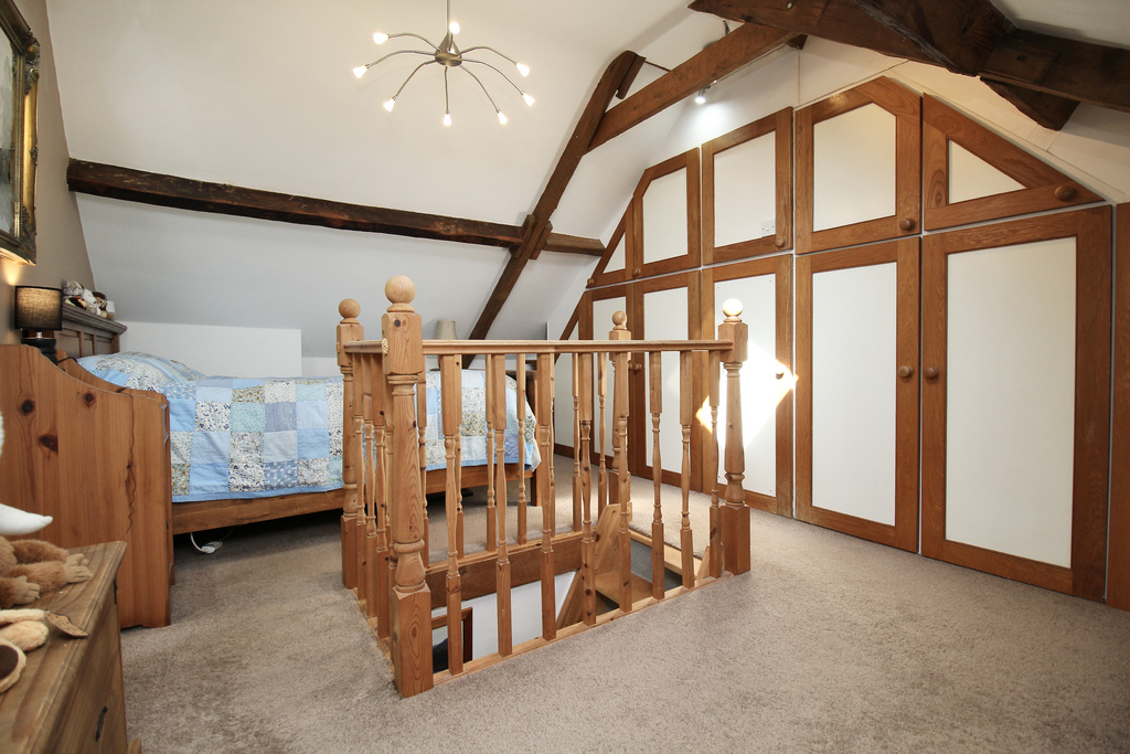 - Alongside the two first-floor bedrooms, the second floor offers a stunning attic room with exposed beams, bespoke wardrobes, eaves storage, and natural light from a Velux window—a characterful ret...
