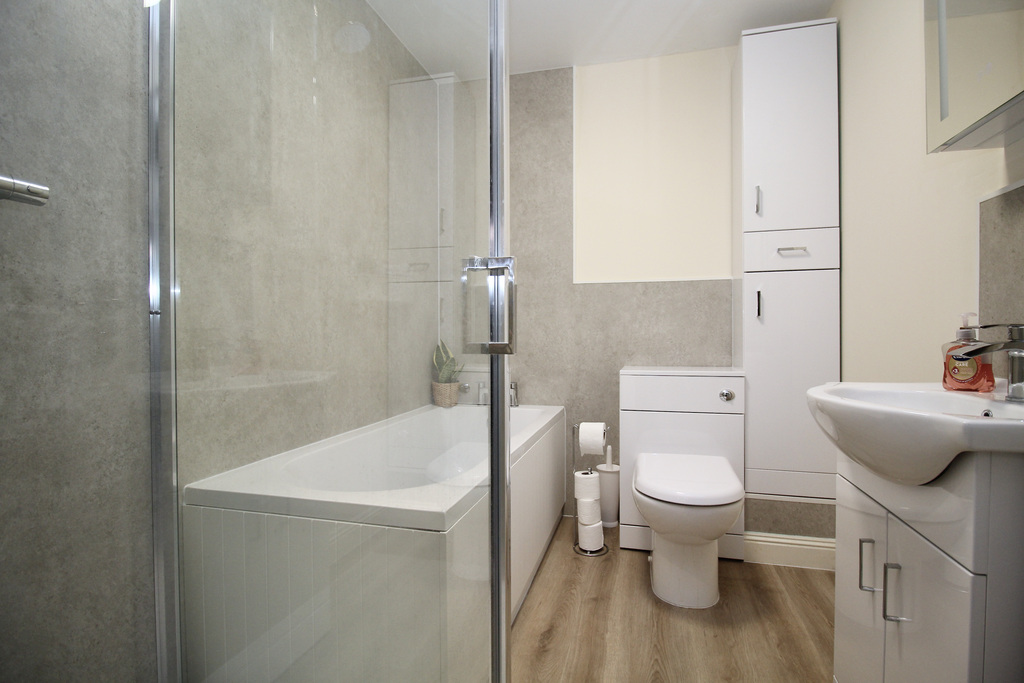 - The family bathroom includes a panelled bath with shower over, wash hand basin and a WC