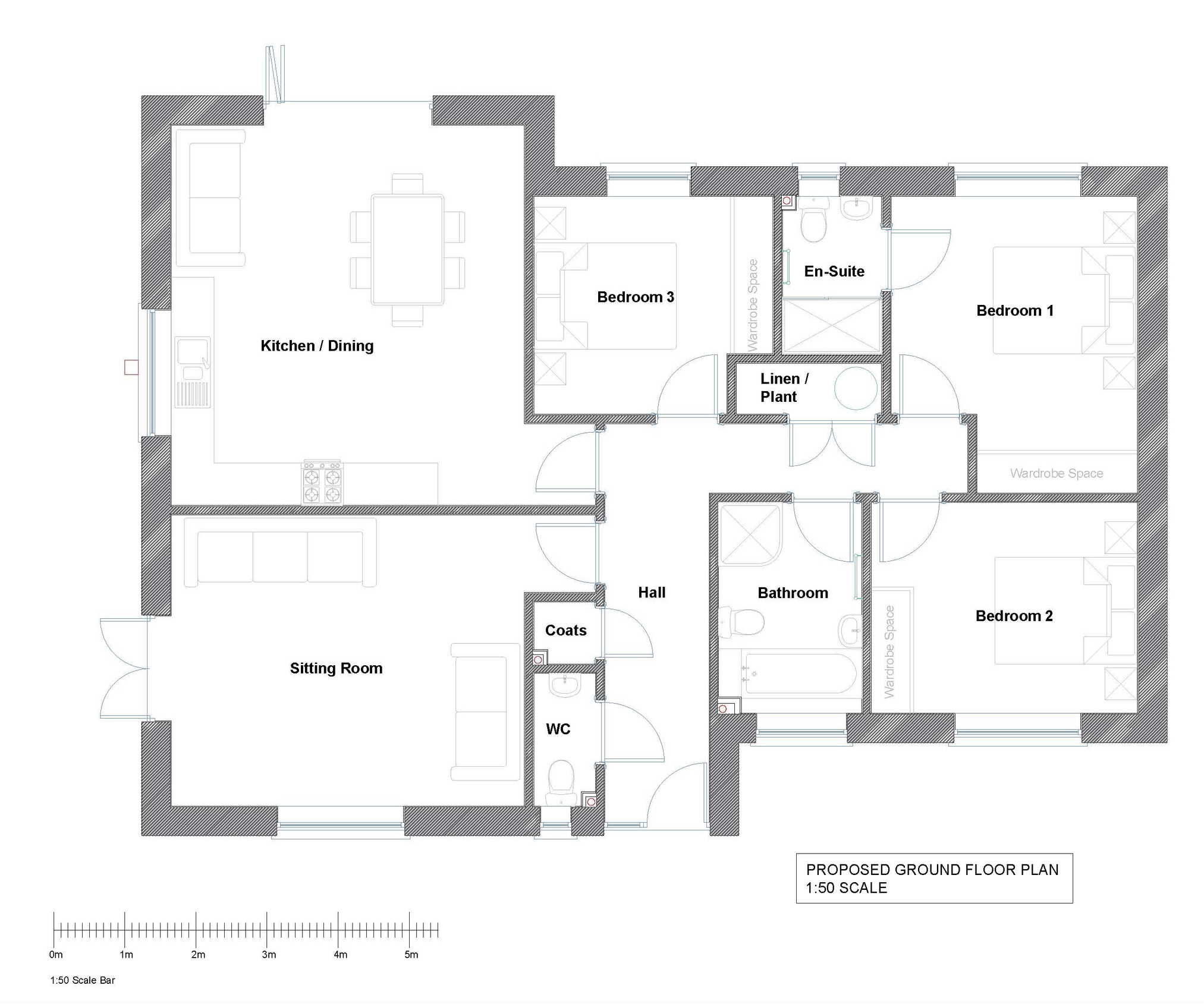 The finished property will be of comfortable proportions, spanning a generous 1287sqft (119.6m2) of useable single storey floorspace. It will enjoy a tasteful blend of modern architectural features and building methods with a contemporary finish if desired suited to 21st century living, all whilst complementing its surroundings. Location is key and this generous plot is situated in a prime position mid-way along the Jubilee Road, positioned privately at the end of the driveway alongside one other consented plot, and within level walking distance of the town centre amenities.