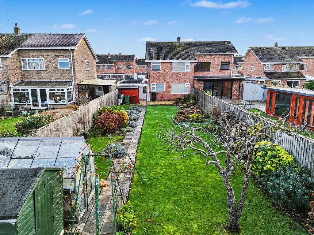 - Superb rear garden featuring a large lawn, established herbaceous borders, mature apple tree, greenhouse and timber sheds, all fully enclosed.