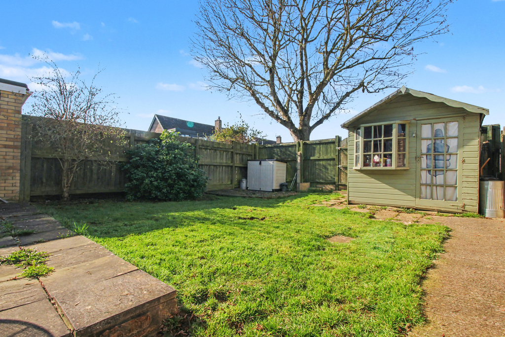 - Good size west-facing garden featuring a patio extending from the rear elevation, an area of lawn, side access to the front of the property, and rear access to the green behind.