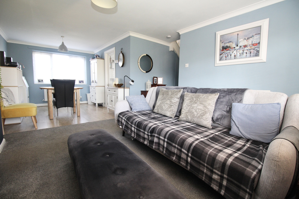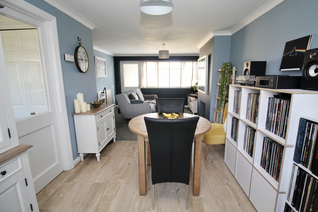 - Bright and spacious dual-aspect sitting/dining room filled with natural light, featuring an attractive inset fireplace and well-defined areas for both relaxing and dining.