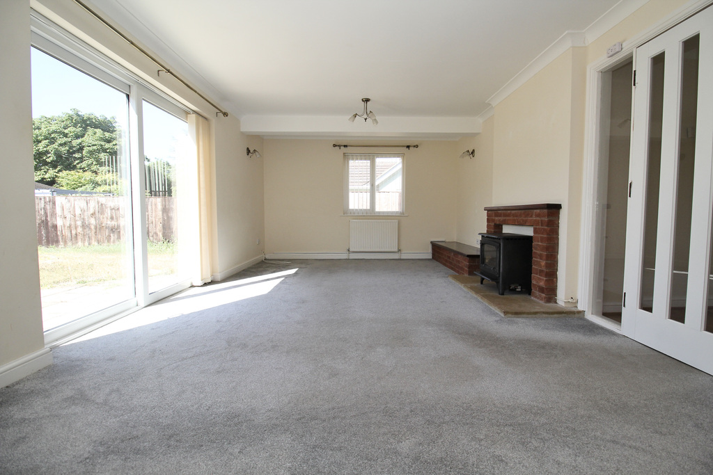 - Generously sized living room, filled with natural light, featuring a focal point fireplace and sliding doors providing direct access to the rear garden.