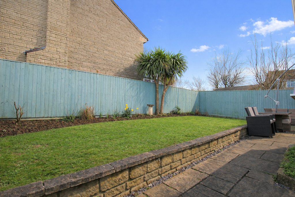 - A low maintenance walled rear garden with a large patio, lawn edged with shrub filled borders and a useful garden shed, with side access.