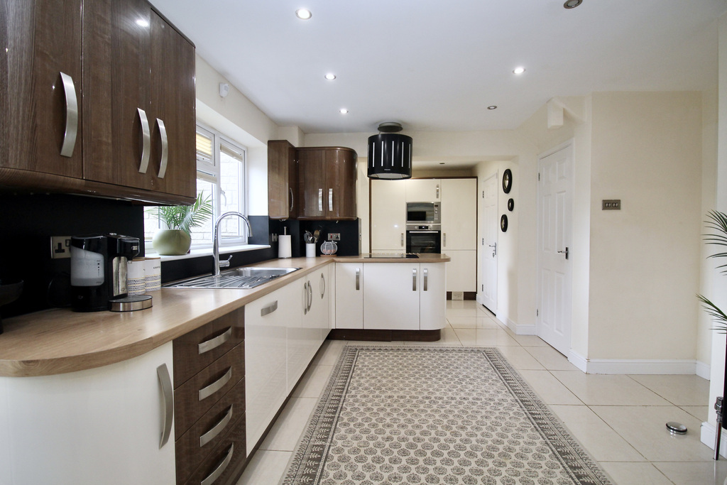 - The kitchen is stylishly fitted with high gloss wall, base and drawer units, generous work surfaces, a ceramic hob with extractor, integrated oven and microwave, dishwasher and tall fridge/freezer...