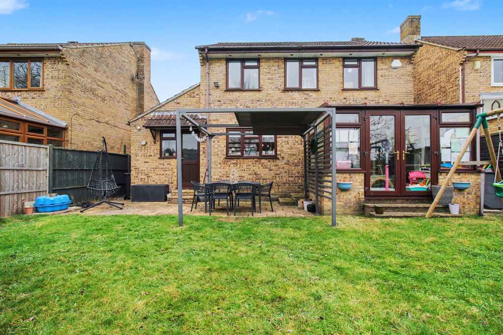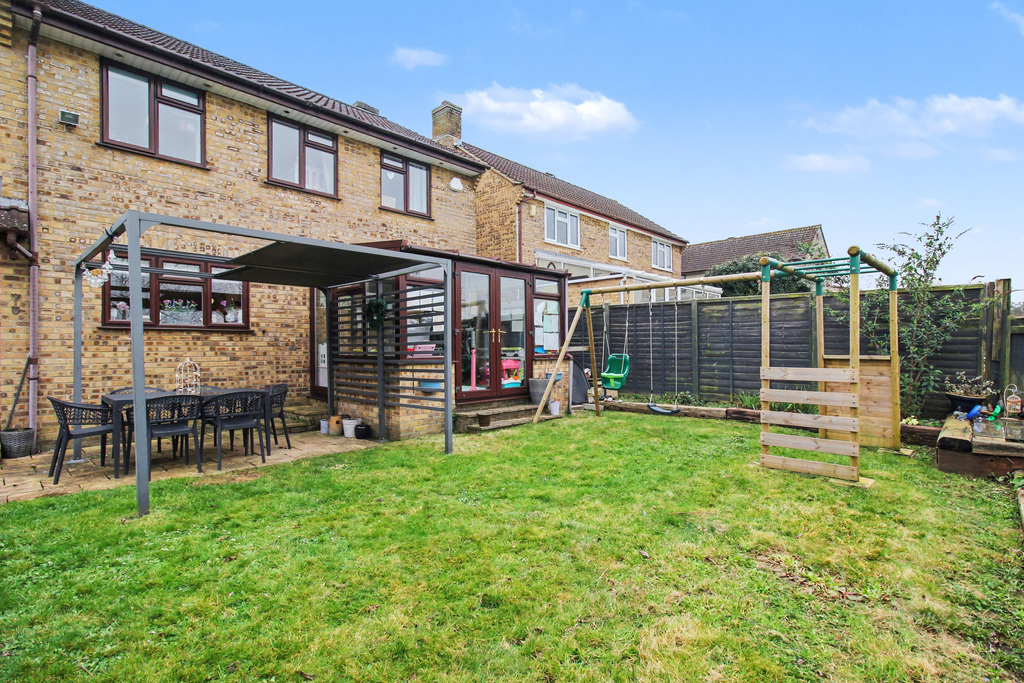 - Enclosed west-facing garden with patio, lawn and well stocked borders.