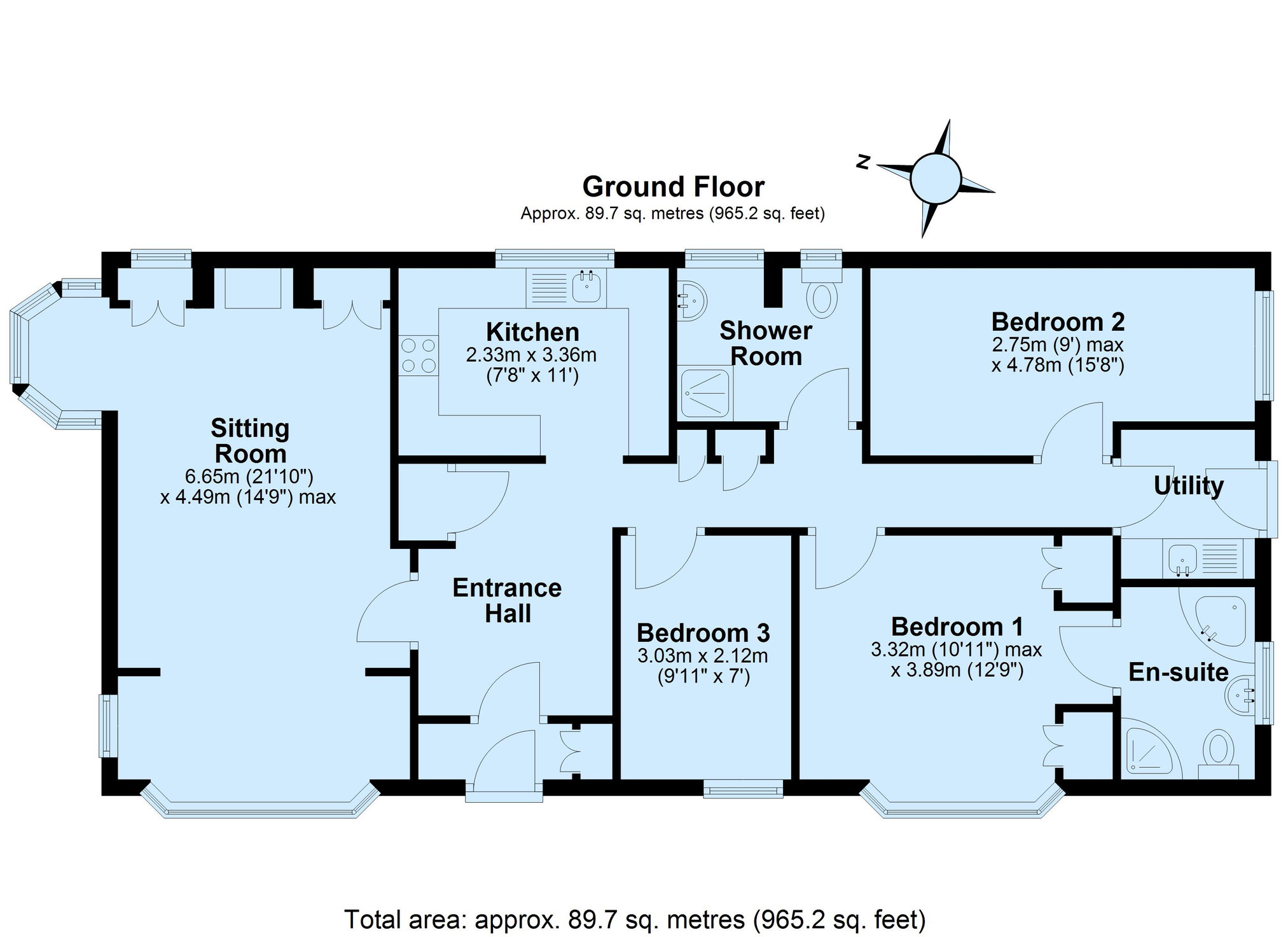 A light spacious detached 3 bedroom 2 bathroom bungalow with sea views, garden, garage and driveway parking.