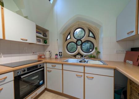 The sitting/dining room offers a calm, relaxing atmosphere with views over the landscaped communal gardens. The kitchen is an inviting and practical space, enhanced by an attractive stone framed feature window overlooking green open spaces beyond.