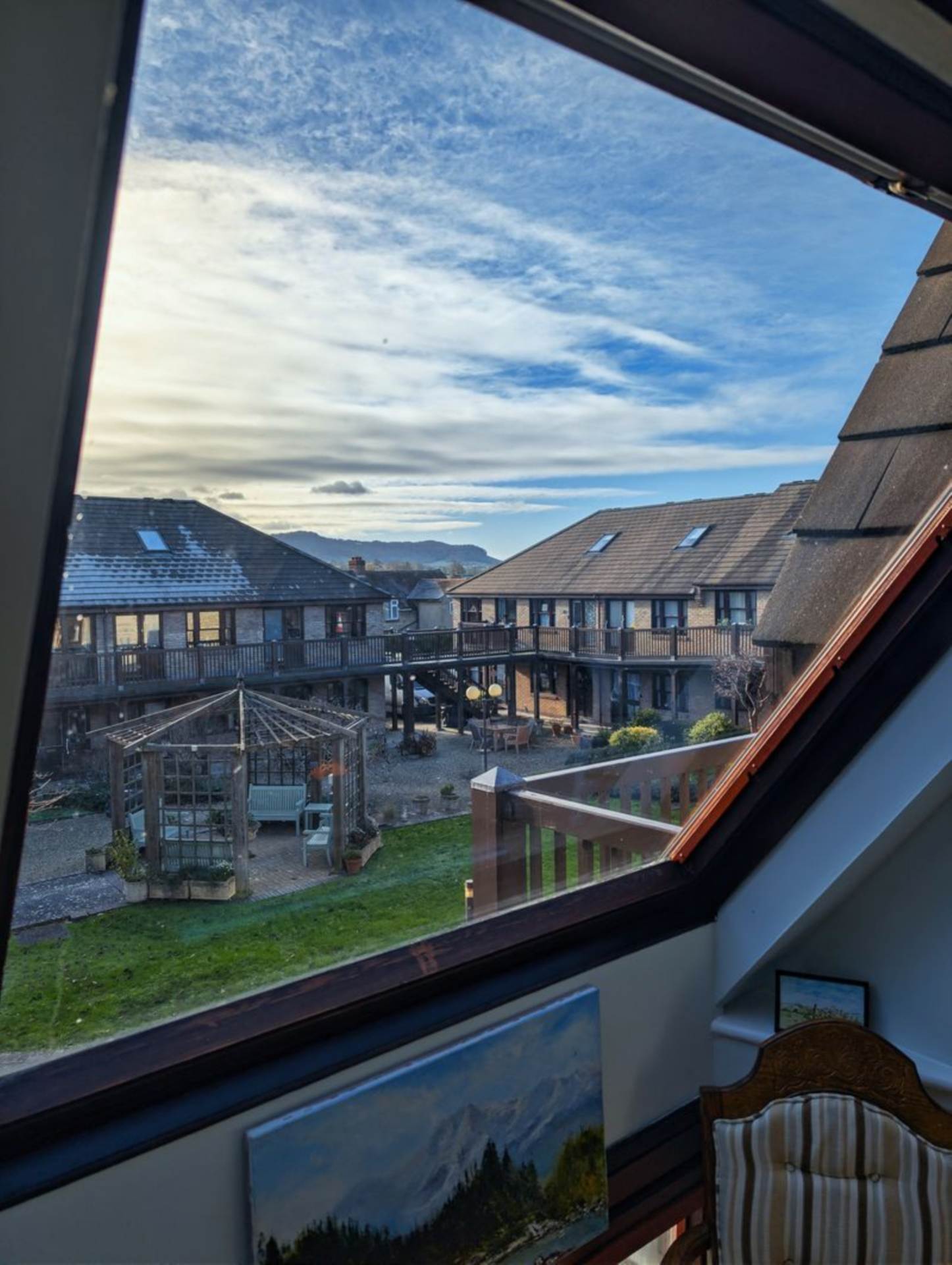 The communal courtyard style gardens are beautifully designed, offering an imaginative blend of mature planting, young trees, and colourful borders. A patio seating area and outdoor lighting provide welcoming spaces for socialising or quiet contemplation. The grounds are professionally maintained by a dedicated gardener.