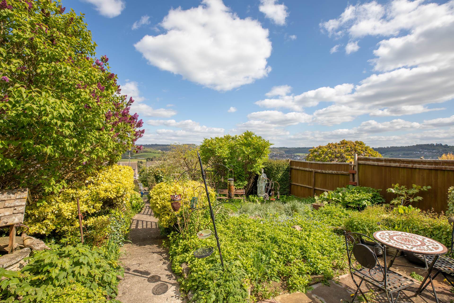 Generous and enclosed garden mainly laid to lawn with well stocked and mature flower, shrub and small tree borders. Patio/seating area, ornamental stone built well and pond. Space for garden shed. Outside tap.