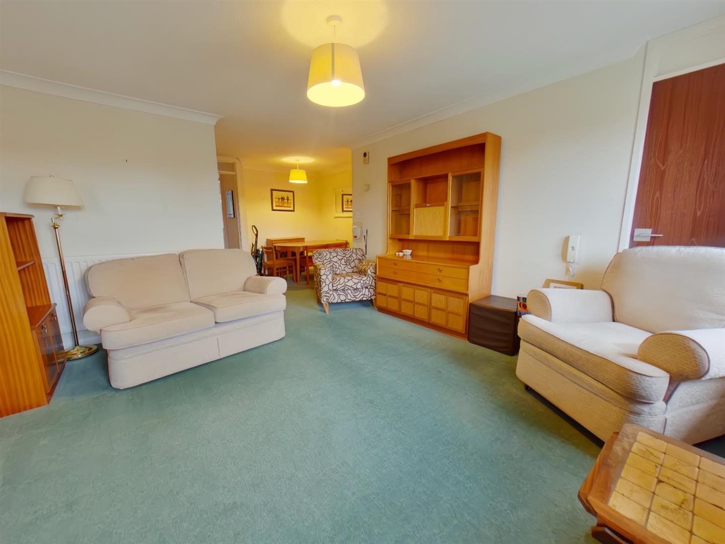 Lounge - 4.09m x 3.76m (13'5" x 12'4") - Two double glazed windows to front elevation, access to storage cupboard, radiator, electric fire, telephone line, television point, 24 emergency pull cord.