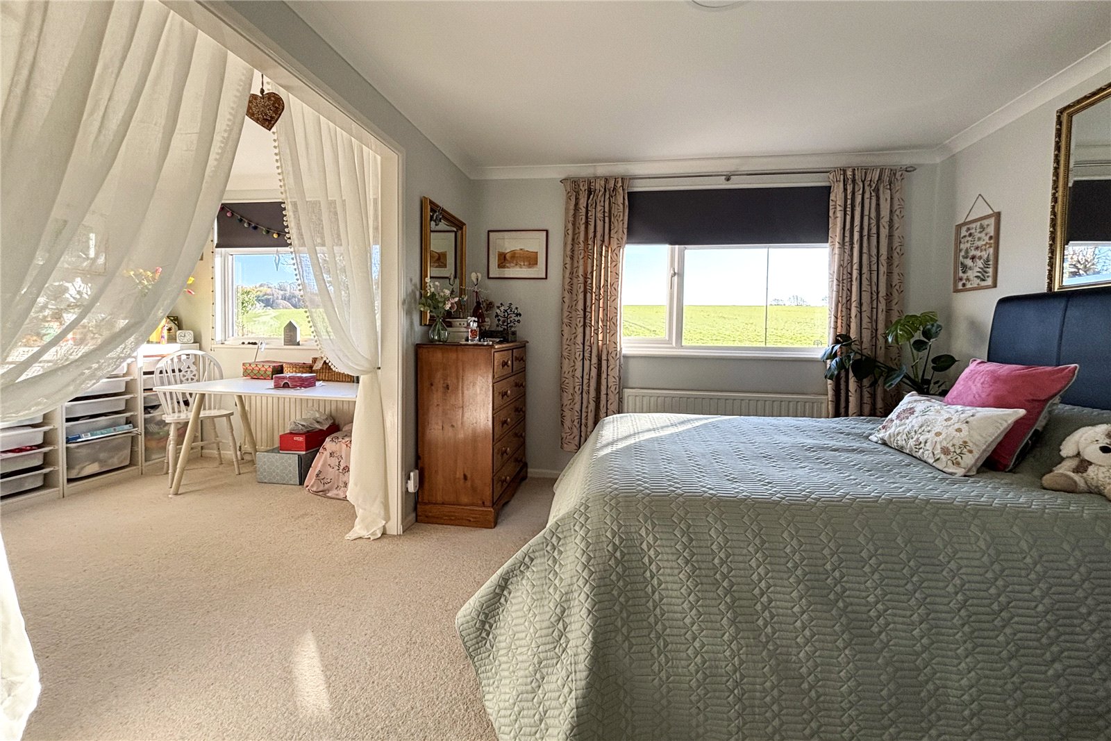 As you make your way upstairs the property continues to impress with two bedrooms. The current owners have opened the two rooms, so it is currently being used as a very spacious bedroom/dressing room. There is also an ensuite. A very large attic area spanning the length of the house which is boarded with good head height allows for more storage.