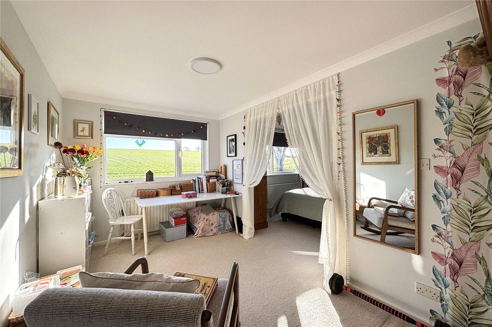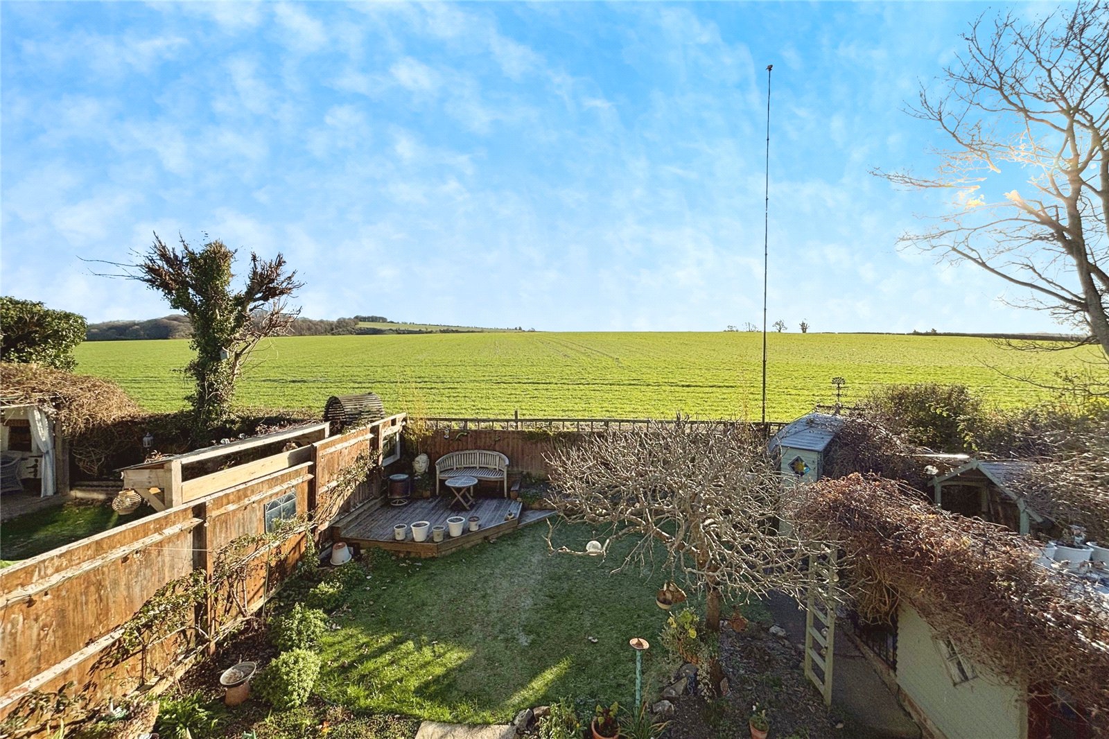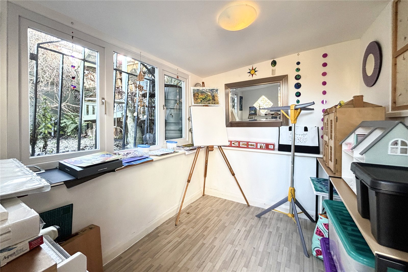 Externally the garden to the rear of the property is well maintained and fencing provides a secure setting for pets and children and once again has beautiful views over farmland. There is a garage which has been converted into a workshop with windows to the front and a studio that has been built on the back of the garage which is an ideal studio or workshop. To the front there is a good-sized lawn that sets the house back from the road and there is a driveway providing parking.