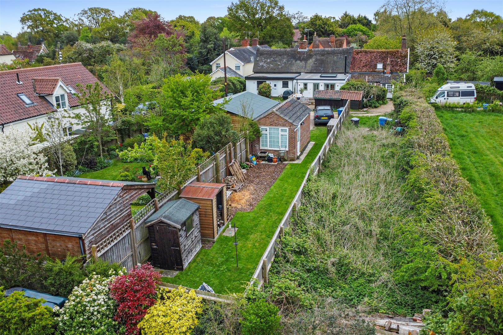 Further enhancing this unique offering is a separate plot across the way, inclusive with the sale. Here you'll find off-road parking for several vehicles, a detached single garage, and an additional garden area to relish.