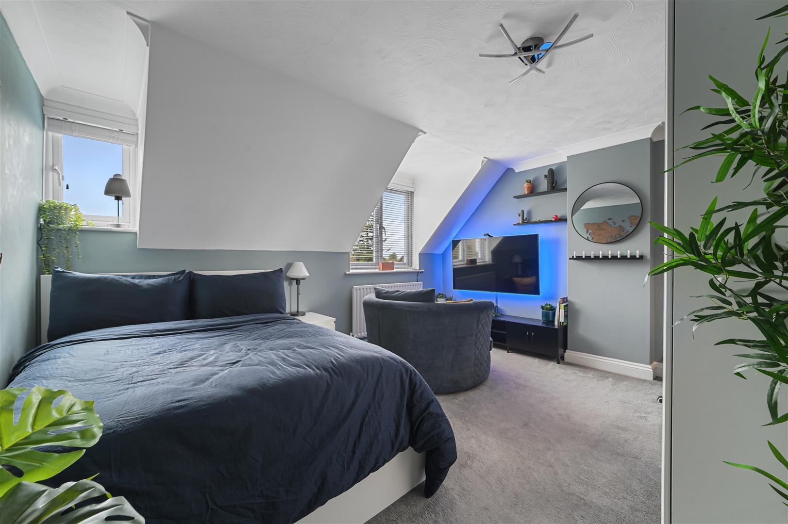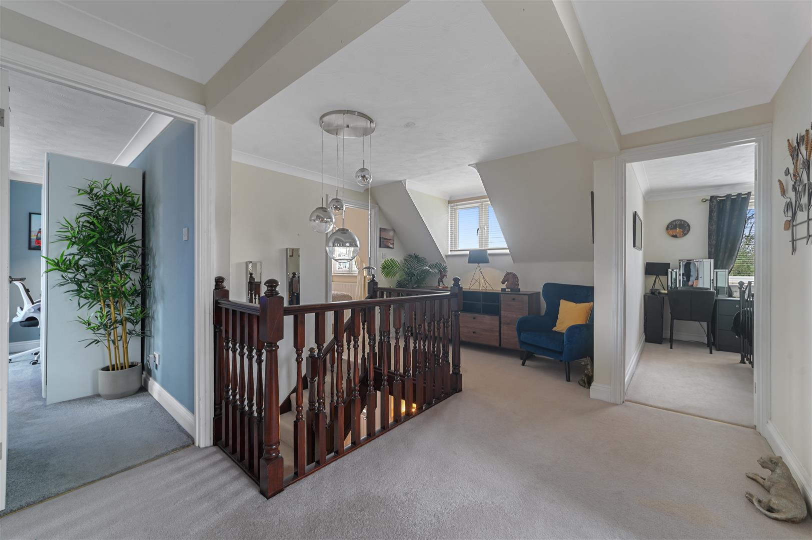 Upstairs, four double bedrooms ensure restful sanctuaries for all, with the main bedroom benefitting from built-in wardrobes and an en-suite shower room. The family shower room, recently renovated, now boasts a large walk-in shower, elevating the sense of luxury within the home.