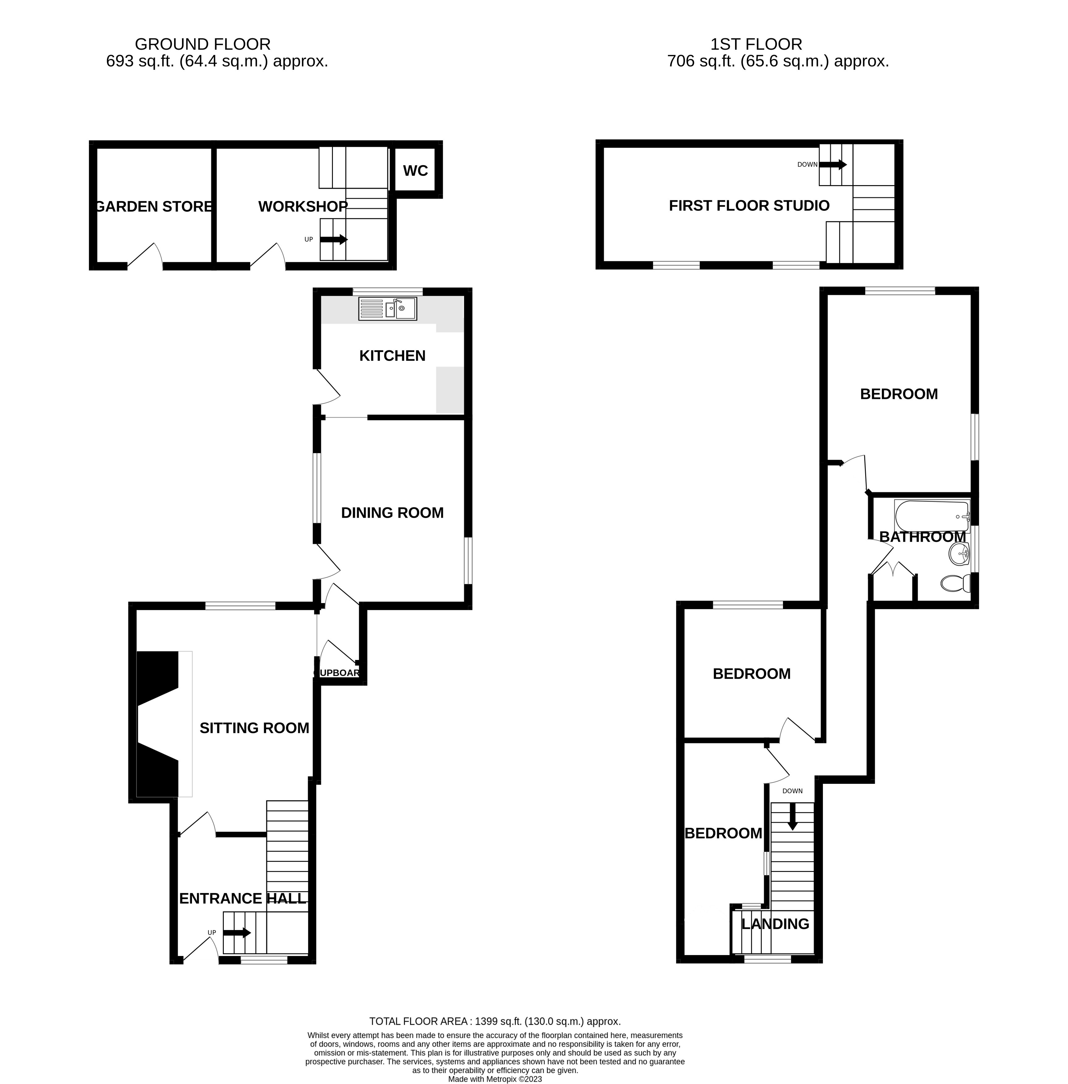 23 Church Street forms one end of a short terrace of red brick fronted cottages separated by a set of carriage gates through which all four properties have a pedestrian Right of Way to their respective rear access. As No. 23 is on the the end there is no need for others to access it, or to disturb its privacy. This particular cottage like Dr Who's expanding phone box has the many attributes of a larger property being two abutted buildings now forming the whole. Consequently, behind the front door one is greeted by a good size entrance area with wide tall stairwell before heading through to two very comfortable sized reception rooms. It is also worth noting that unlike the other cottages and houses along the street, this property does not have a reception room alongside the pavement. The clever creation of the hallway and stairs set the reception space back from the street and this creates a noticeable sense of peace and calm. As can be seen from the floorplan, the staggered layout allows the reception room window to provide a long view to the barn at the very rear. The dining room beyond links in with the kitchen. Upstairs, the long landing serves three bedrooms and bathroom. The delightful courtyard garden, walled along one side and bordered by the cottage and barn, is a lovely backdrop to the main accommodation. This versatile barn clearly a huge bonus provides workshop space, storage along with a converted first floor. A downstairs wc is the finishing touch. It has been an office, a children's safe sleepover space and currently a peaceful haven.