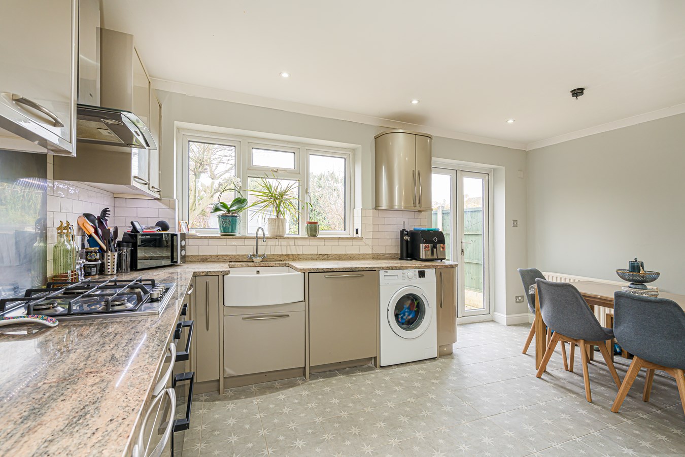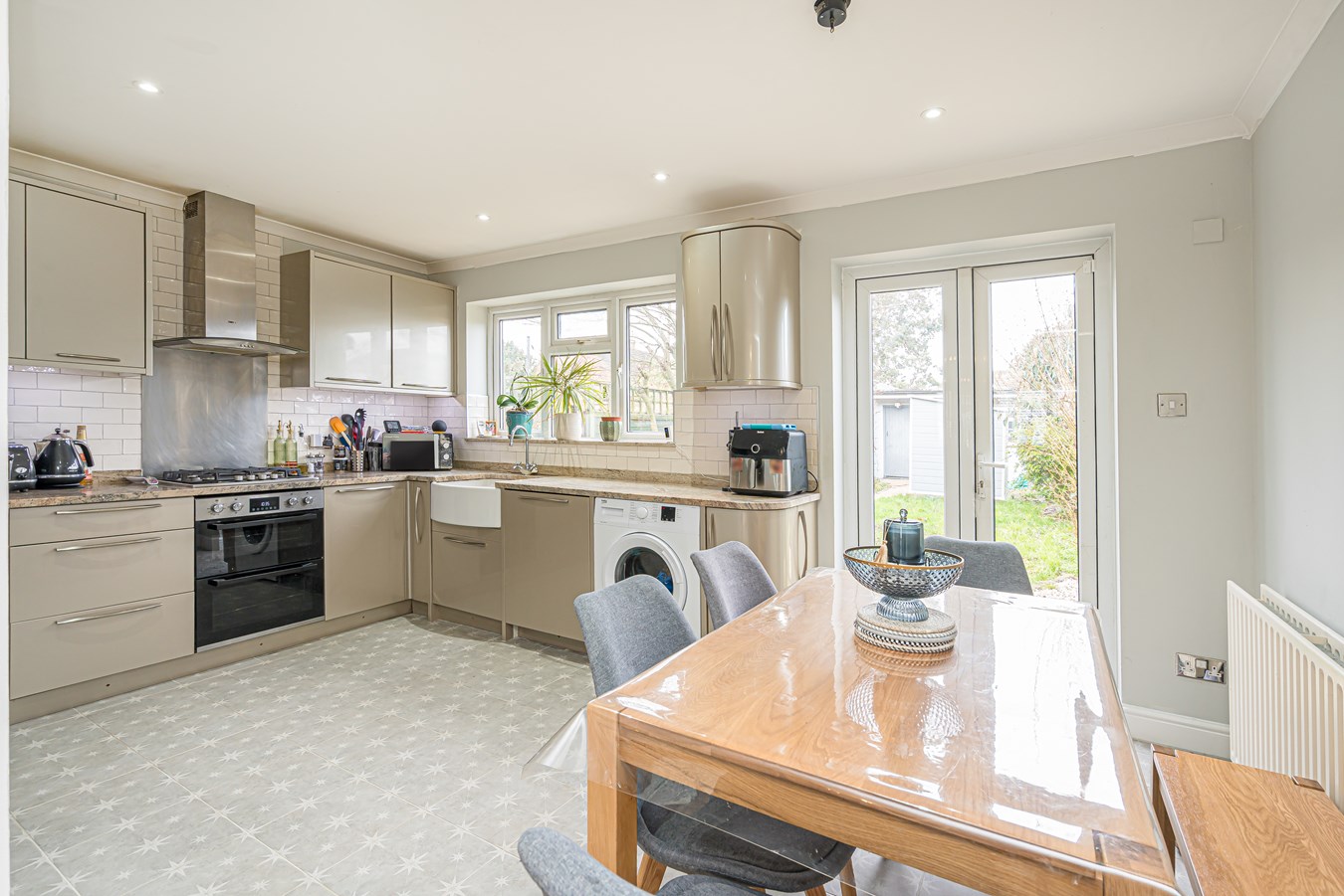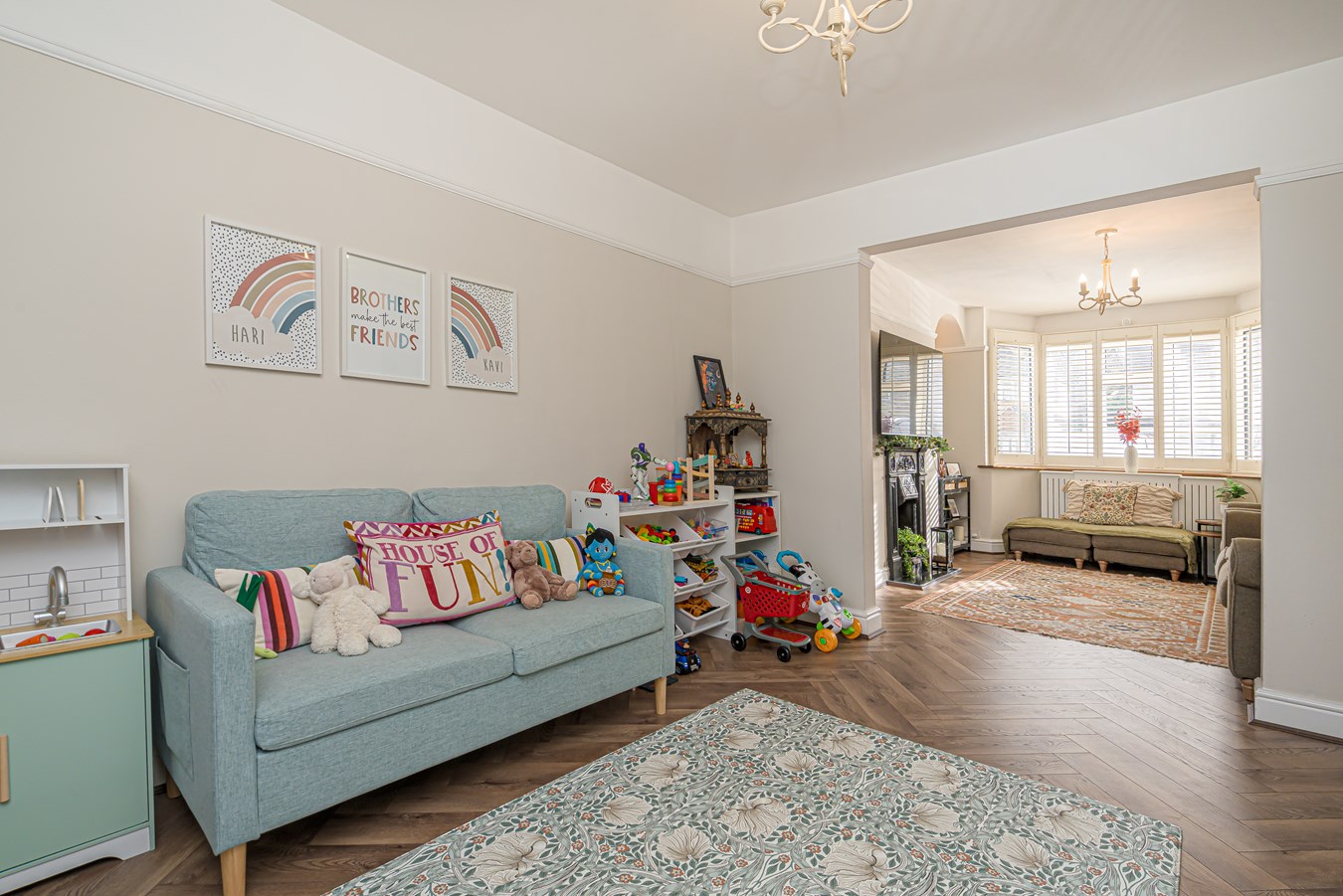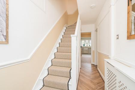 Located on this popular and family-friendly residential road in Sunbury-on-Thames, this beautifully presented four bedroom home offers exceptional space, a versatile layout arranged over three floors and a superb outbuilding, making it an ideal long-term family purchase. From the moment you step inside, the property immediately stands out for its immaculate presentation. The entrance hallway leads through to a charming front reception room with bay window, a cosy yet elegant space ideal for evenings and more formal entertaining. To the rear, the house opens into the heart of the home, a bright kitchen/breakfast room overlooking the garden, perfectly positioned for modern family living and day-to-day life. A separate dining room connects seamlessly, creating a sociable ground floor arrangement, further complemented by a practical utility room and additional storage. Upstairs, the first floor provides three well-proportioned bedrooms and a modern family bathroom. The top floor has been cleverly converted to create a superb principal bedroom suite, offering a peaceful retreat away from the main family accommodation and benefitting from useful eaves storage and an ensuite shower room. The rear garden is a mixture of lawn and patio and gives access to the outbuilding which is fully powered and connected to a water supply. This makes it incredibly versatile, perfectly suited as a home office, gym, studio, treatment room or independent workspace, something increasingly sought after by buyers. Further benefits include an electric charging point and being well located for schools, shops, major road links including the M3/A316 and mainline rail giving direct access to London Waterloo, viewings are highly recommended!
