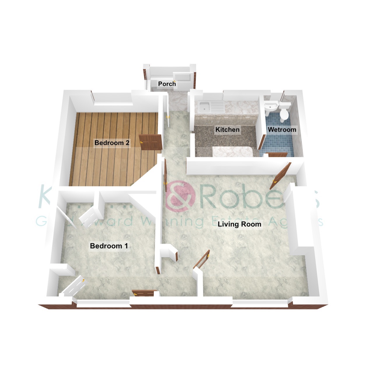 This delightful home features two spacious double bedrooms, each offering ample space for furnishings and personal touches. The property is served by a well-appointed family wet room.