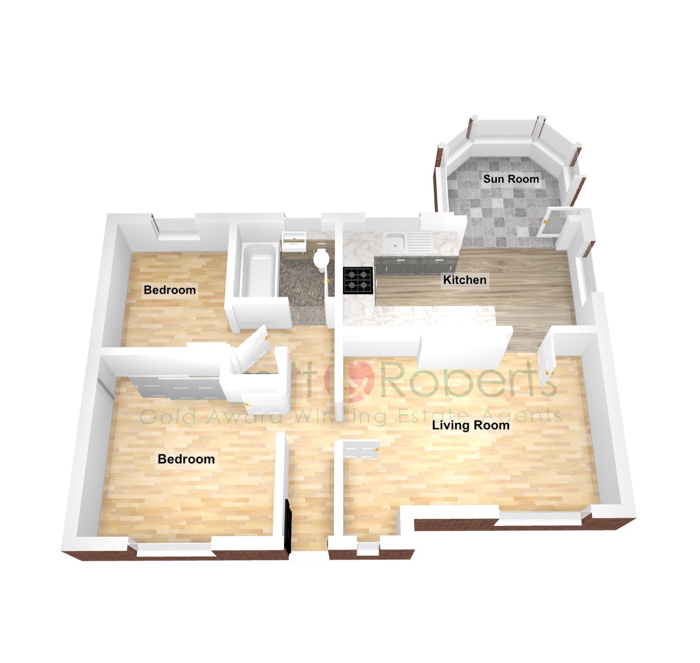ACCOMMODATION Entrance HallLiving Room (3.60m x 4.90m)Kitchen (4.90m x 2.60m)Sun Room (2.60m x 2.30m)Bedroom 1 (3.40m x 3.40m)Bedroom 2 (2.70m x 2.50m)Bathroom (1.90m x 1.70m)