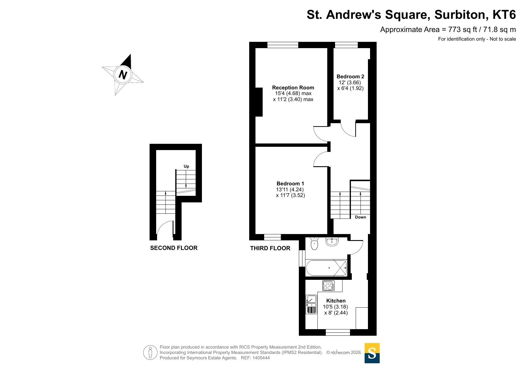 Seymours of Surbiton are delighted to offer to the market this spacious top floor apartment overlooking the sought after St. Andrew's Square. Only a short walk from the mainline station and the Farmer's Market, bars and restaurants on Maple Road, the property further benefits from a share of the freehold and no onward chain.