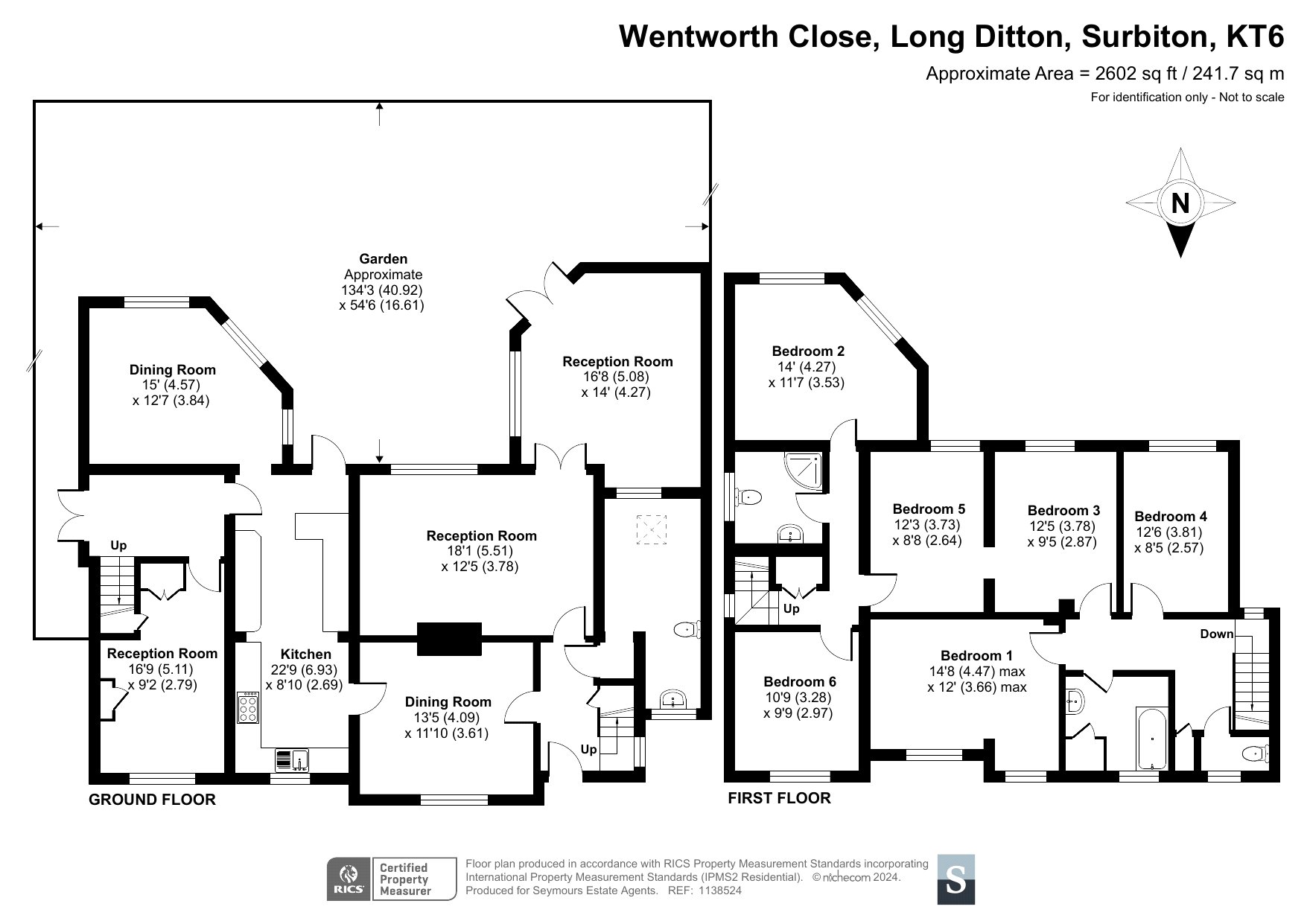 Seymours of Surbiton are delighted to offer to the market this outstanding six bedroom, four reception room detached family home located in a desirable cul-de-sac with easy access to Surbiton Mainline Sation and within the catchment area for good schools. The property further benefits from a beautifully landscaped 100' south facing garden, off street parking for several cars.