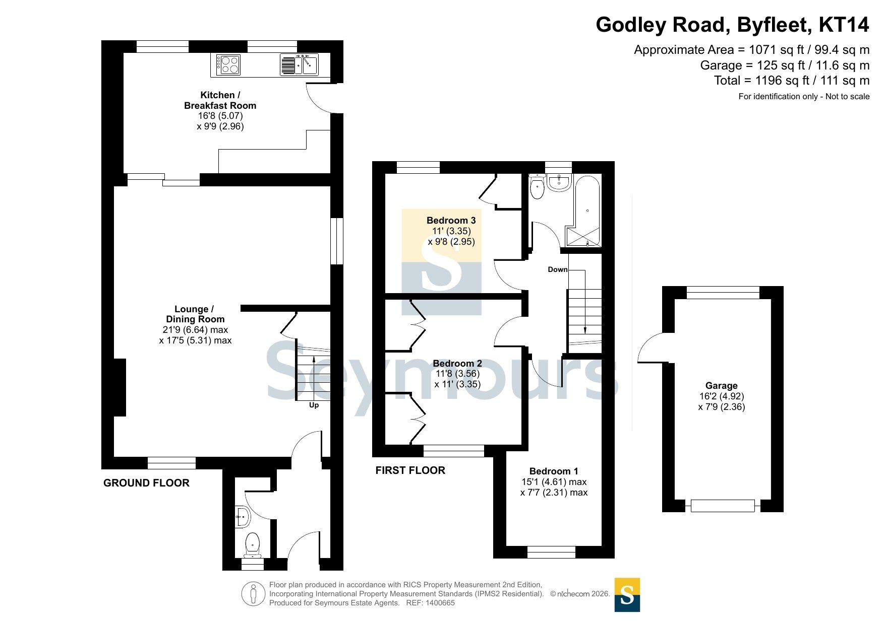 Upstairs offers 3 excellent-sized bedrooms and a modern, fully tiled family bathroom. Outside, there is a detached garage and driveway, while gated side access leads to a particularly good-sized rear garden.