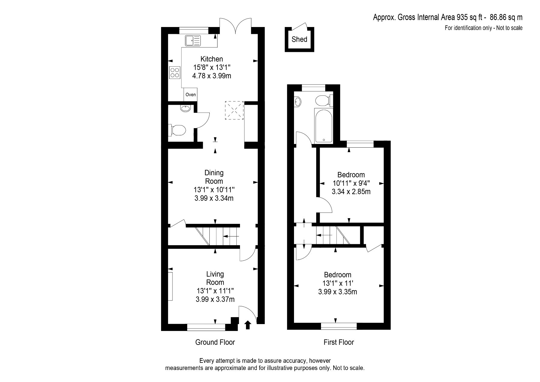 Outside, the rear garden provides a private outdoor space with a combination of patio and lawn, along with established planting and a garden shed for additional storage. The front of the property has an attractive traditional exterior and welcoming entrance. Conveniently located within walking distance of local shops and schools, this home would suit first-time buyers, small families or those looking to downsize.