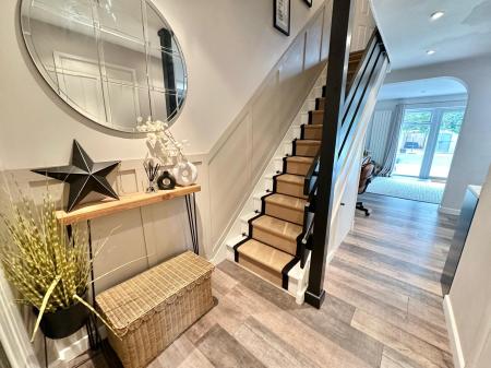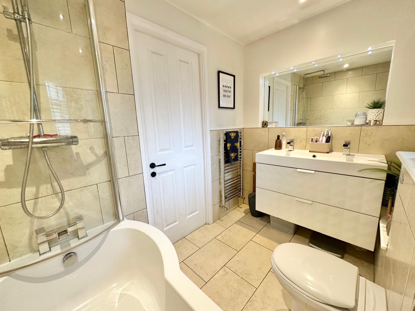 On the first floor you will find the three double bedrooms, and the family bathroom. The bathroom consists a 'P' shaped bath with a wall mounted shower above, WC and oversized basin with a floating vanity unit under.