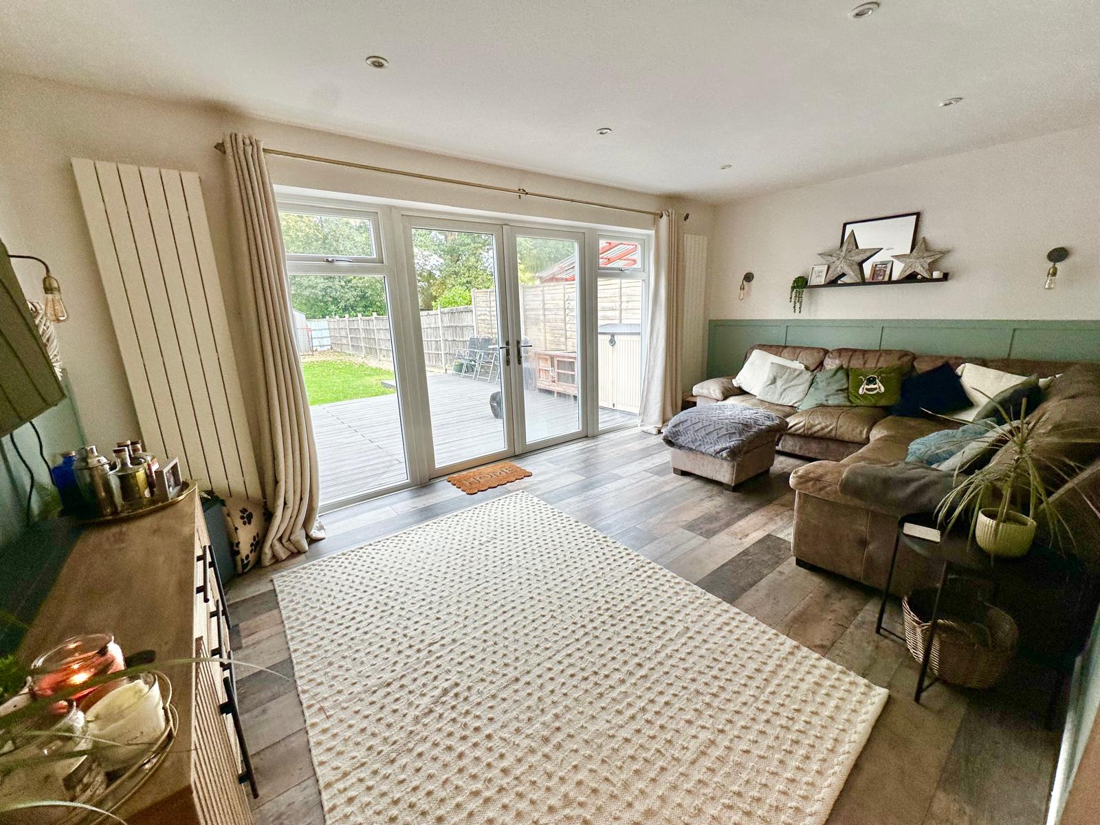 Externally there is a private and secluded rear garden, with a composite deck area leading to the lawn. There is a hard standing at the bottom of the garden with a gate giving access to the front of the property.