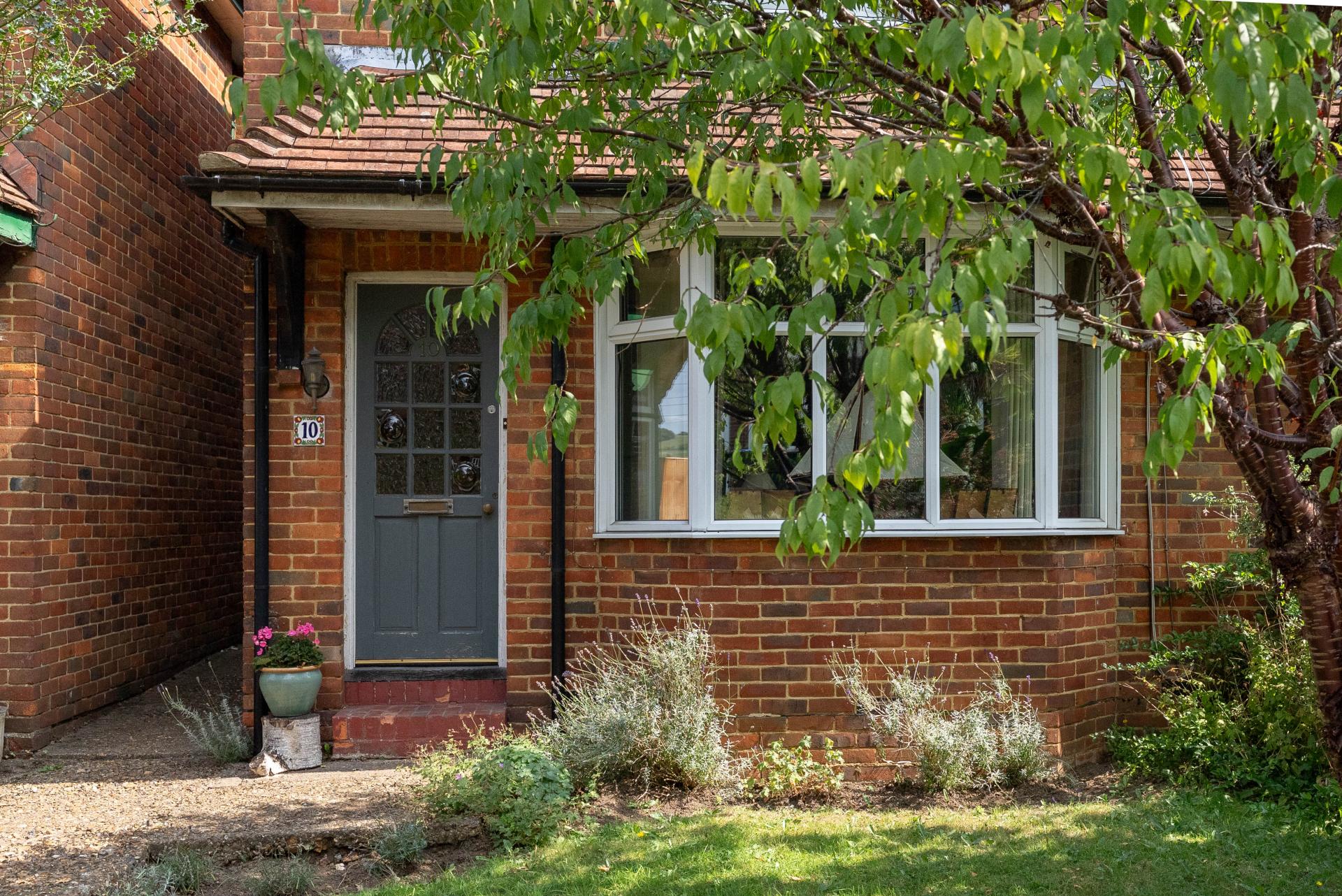 To the front, the house is set behind a small garden with a pathway to the front door.