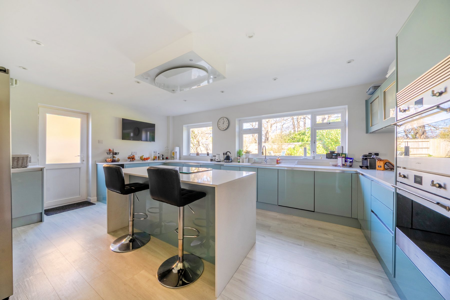 The property also boasts a stylish and extensively fitted modern kitchen/breakfast room, complete with a central island and delightful views over the rear garden. Upstairs, there are 4 generously sized bedrooms. The principal bedroom benefits from a luxurious en-suite shower room, while the remaining three bedrooms are served by a contemporary fully tiled family bathroom. Externally, the property offers an impressive frontage with ample parking for multiple vehicles. Gated side access on one side of the house leads through to the beautifully manicured rear garden, providing a perfect outdoor space to enjoy.