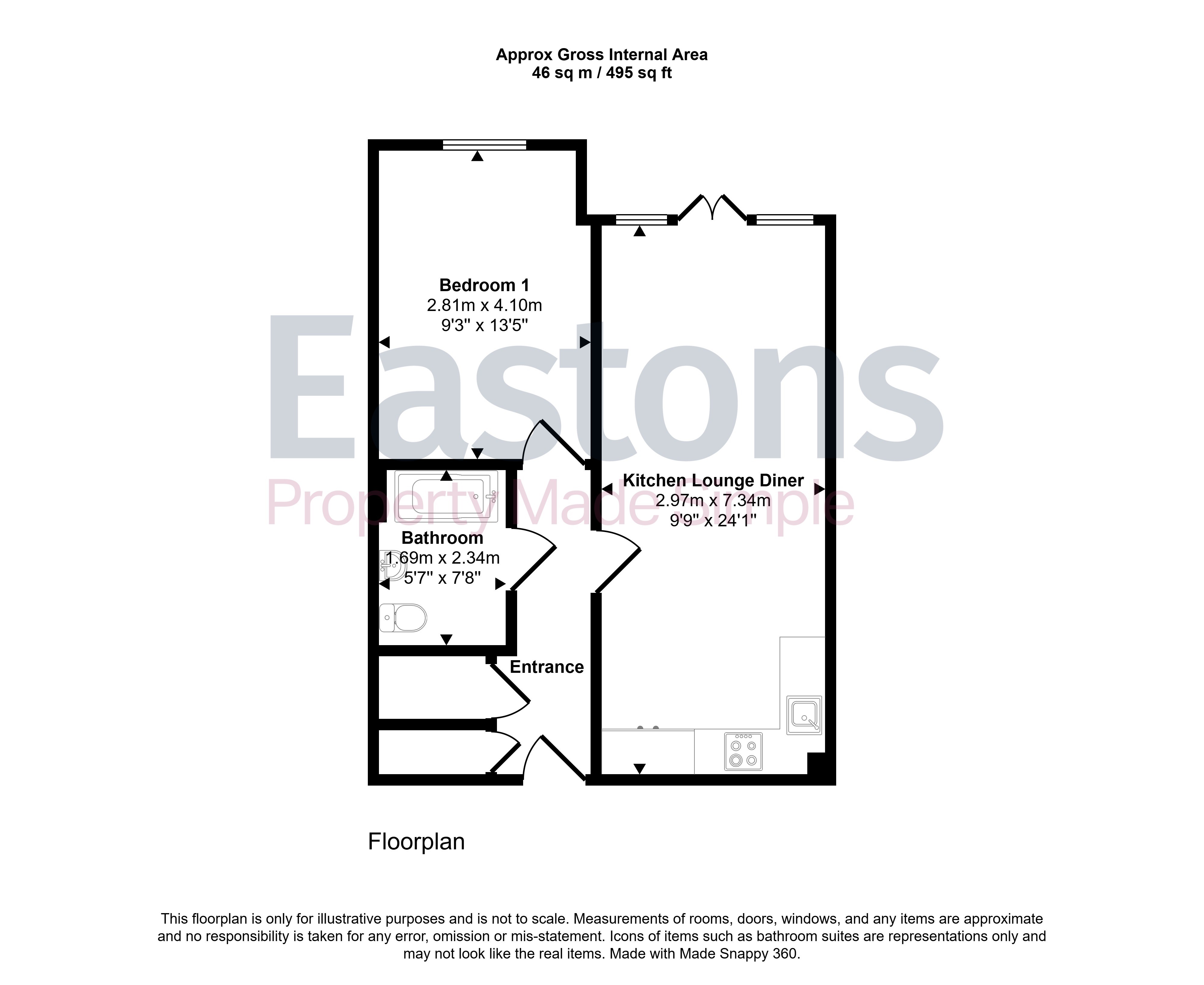 A well-presented one bedroom upper floor purpose built flat offering comfortable and modern living. The property features a bright lounge with an open-plan kitchen, creating a practical and sociable living space. Patio doors from the lounge open onto a private balcony, allowing plenty of natural light and providing an ideal spot for outdoor relaxation and with the added benefit of communal garden and residents off road parking. The flat also includes a well-proportioned bedroom and a neatly finished bathroom, completing this attractive and well-maintained home.