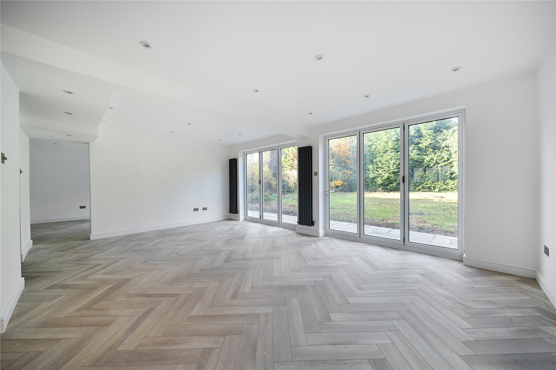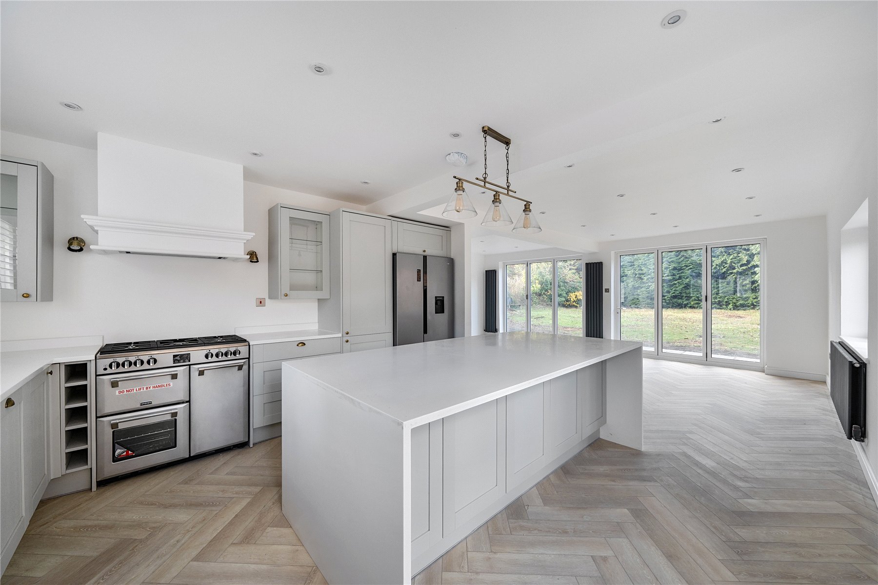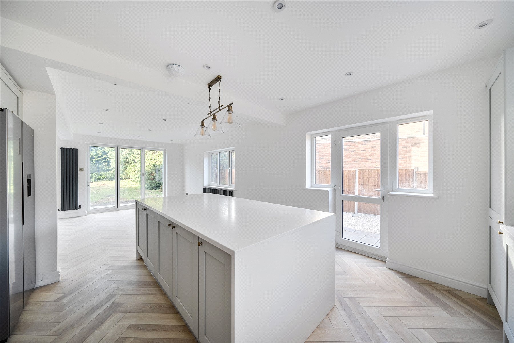 Set within a fantastic plot and located in a sought-after private estate, this attractive and newly refurbished 4 bedroom detached family home boasts numerous luxurious features and is offered with no onward chain. The property welcomes you with a spacious entrance hall and a magnificent living room with bi-folding doors opening onto the rear garden, which in turn connects to a comprehensively fitted kitchen/breakfast room complete with a central island. The ground floor also includes 2 further reception rooms, providing exceptional flexibility for modern family living. Upstairs, the master bedroom benefits from a dressing room and a stylish en-suite bathroom. The guest bedroom also enjoys its own en-suite shower room, while the remaining 2 bedrooms are served by a contemporary family bathroom. The property is generously proportioned throughout and finished to an impressively high specification that is sure to appeal to the most discerning buyer. Outside, the home features an impressive frontage offering extensive parking for multiple vehicles, leading to an attached garage. The westerly facing rear garden is well maintained, secluded, and enhanced by an extensive wraparound paved patio—perfect for outdoor entertaining.