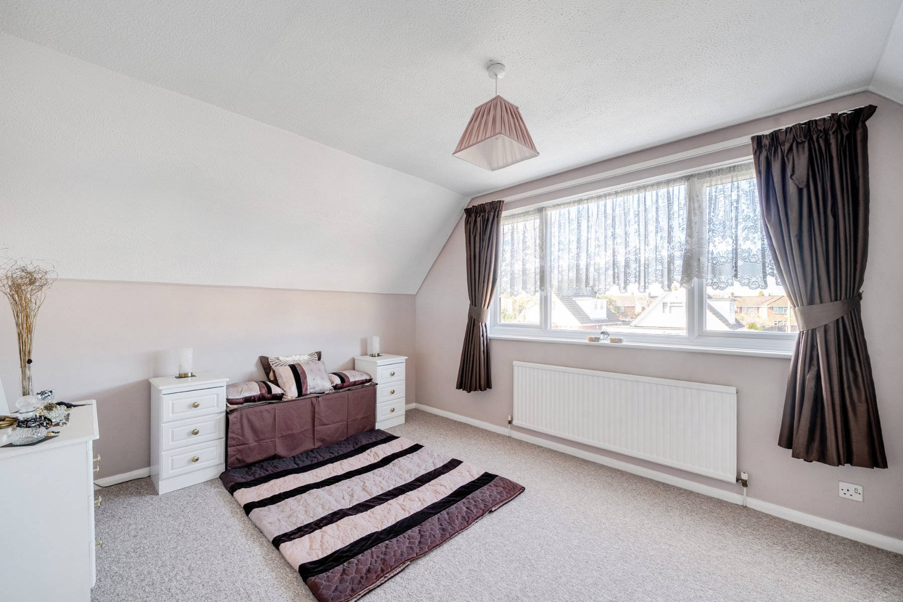 To the front, the large driveway provides ample parking leading to the garage and gated side access.