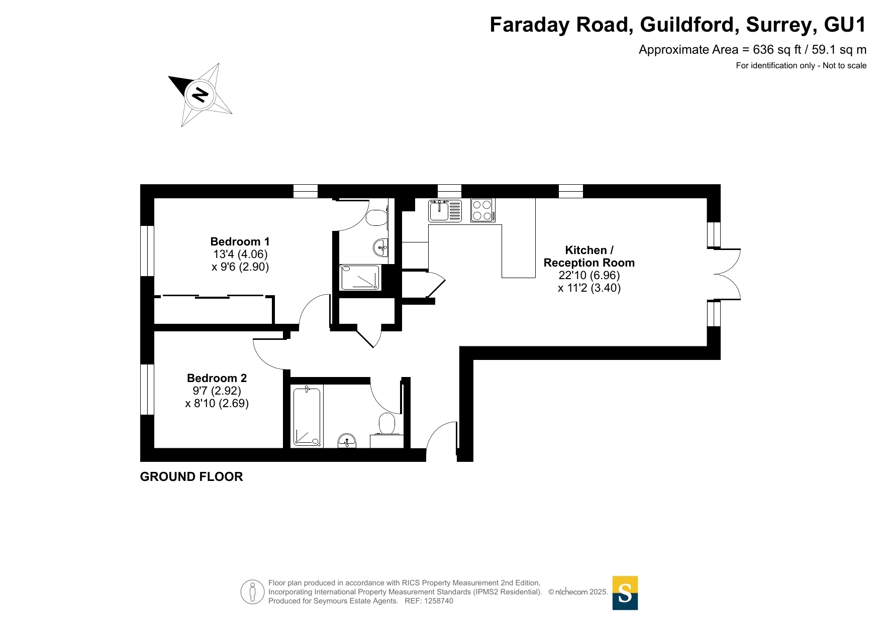 This modern two bedroom ground floor apartment is situated within a highly sought-after development, making it an excellent choice for both investors and first-time buyers. The property boasts a spacious and well-designed layout, offering comfort and convenience for everyday living.The apartment features two generously sized double bedrooms, one of which benefits from its own en-suite shower room, adding a touch of privacy and luxury. The living and dining area is a bright and inviting space, with French doors that open directly onto a small patio, providing seamless access to the well-maintained communal gardens. This outdoor space is perfect for relaxing, socializing, or enjoying a morning coffee.The fitted kitchen is thoughtfully designed to maximize space and functionality, equipped with modern appliances and ample storage. The main bathroom is stylishly appointed, complementing the contemporary feel of the apartment.Additional features include underfloor heating to both bathrooms, an off-street parking area, ensuring convenience for residents and visitors alike. The property is ideally positioned within easy reach of Guildford's mainline station and vibrant town centre, offering excellent transport links and a variety of shops, restaurants, and amenities.This fantastic apartment combines comfort, practicality, and a prime location, making it a highly desirable home or investment opportunity.