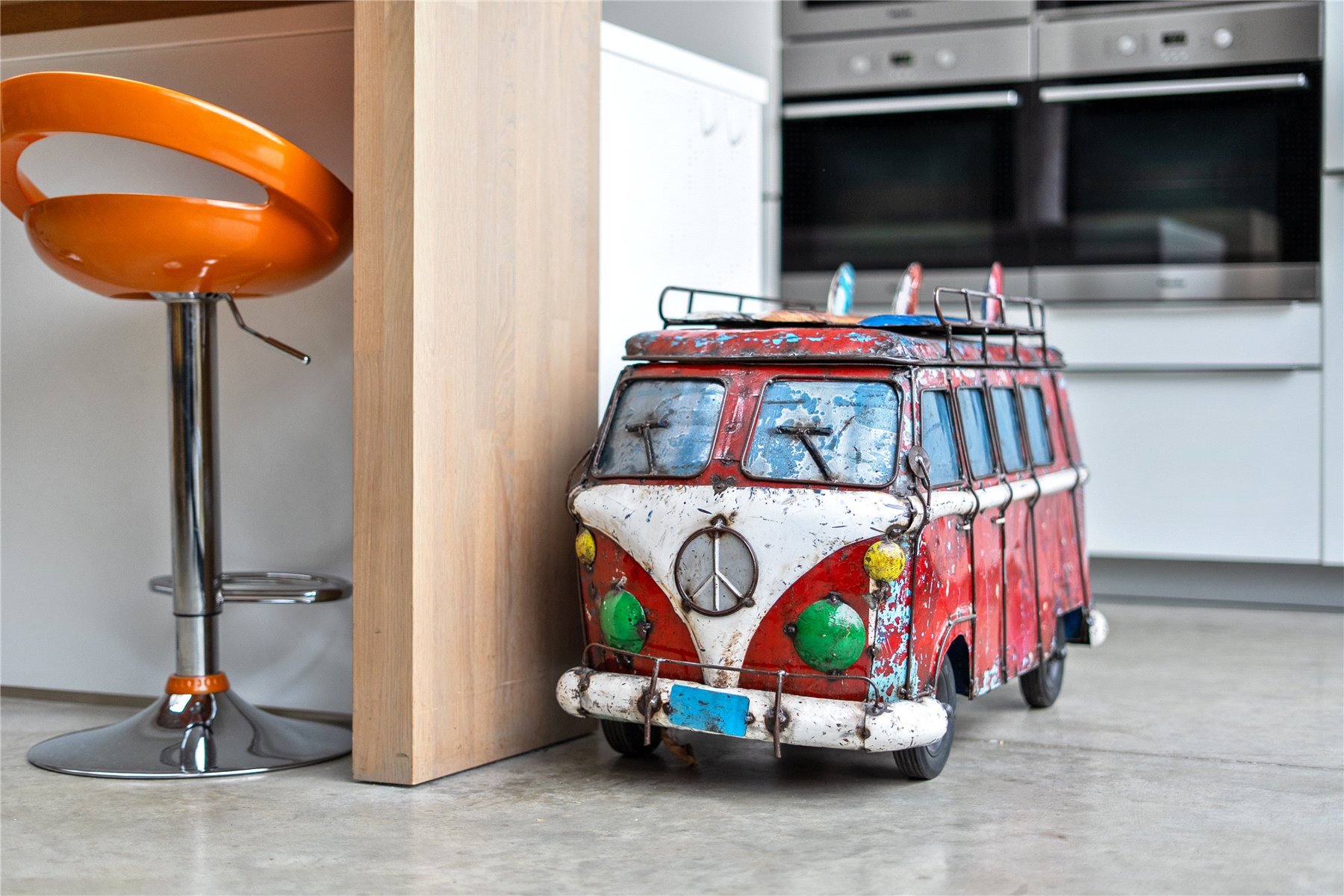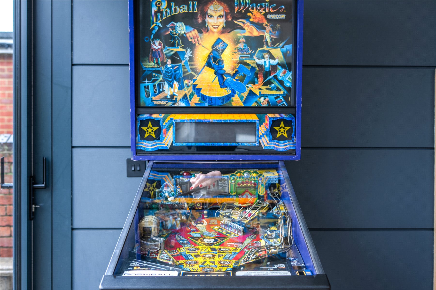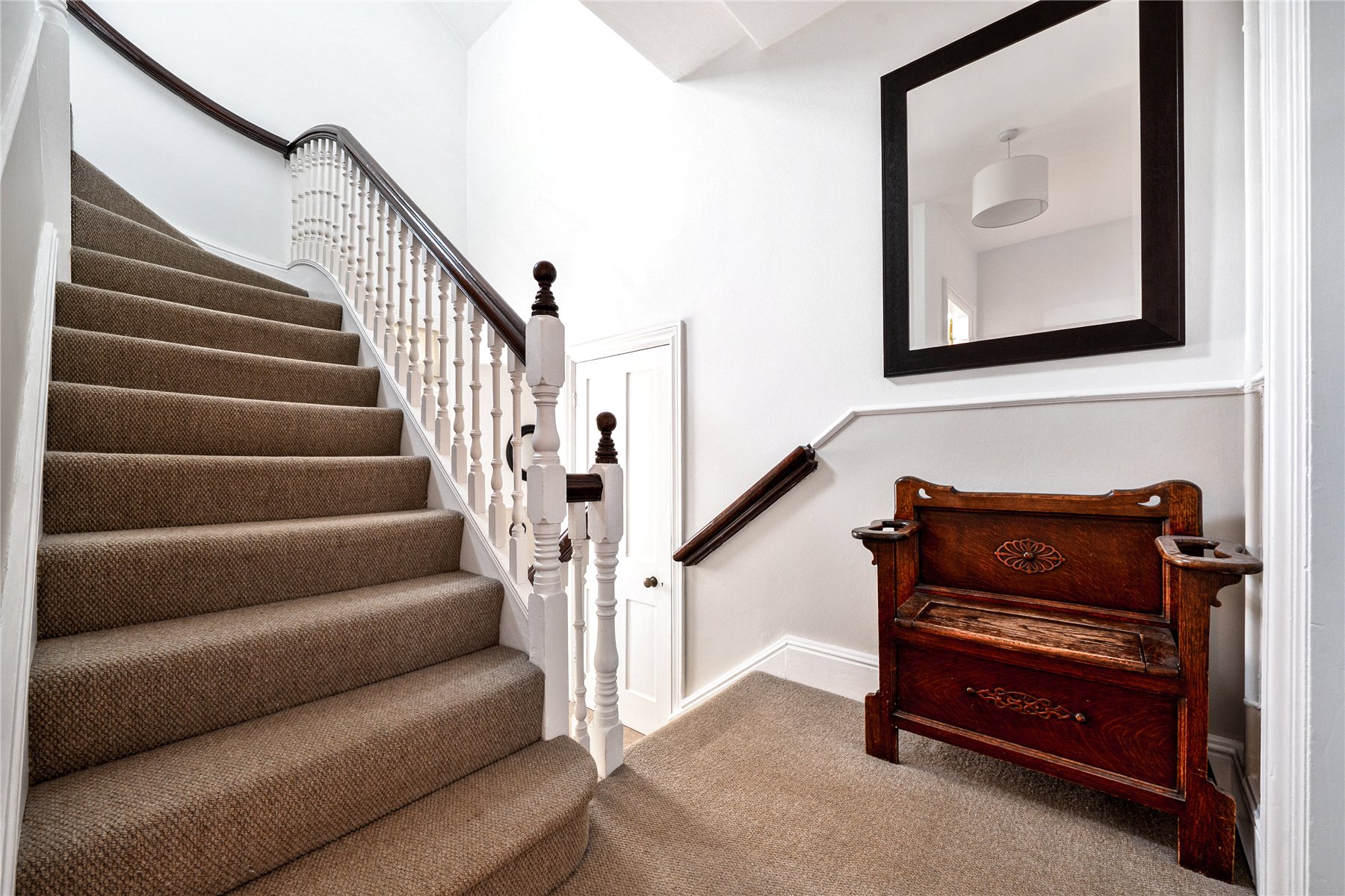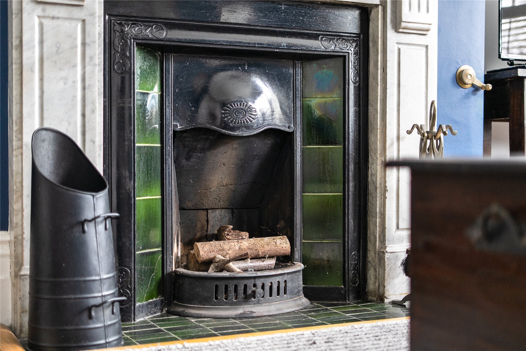 Throughout the house, original features such as fireplaces, stained glass windows, period door handles and the preserved whistle pipe sit comfortably alongside polished concrete floors, underfloor heating, solar technology and carefully considered contemporary finishes. Even the original front door key, now displayed near the cellar stairs, has been retained as a quiet but telling detail.