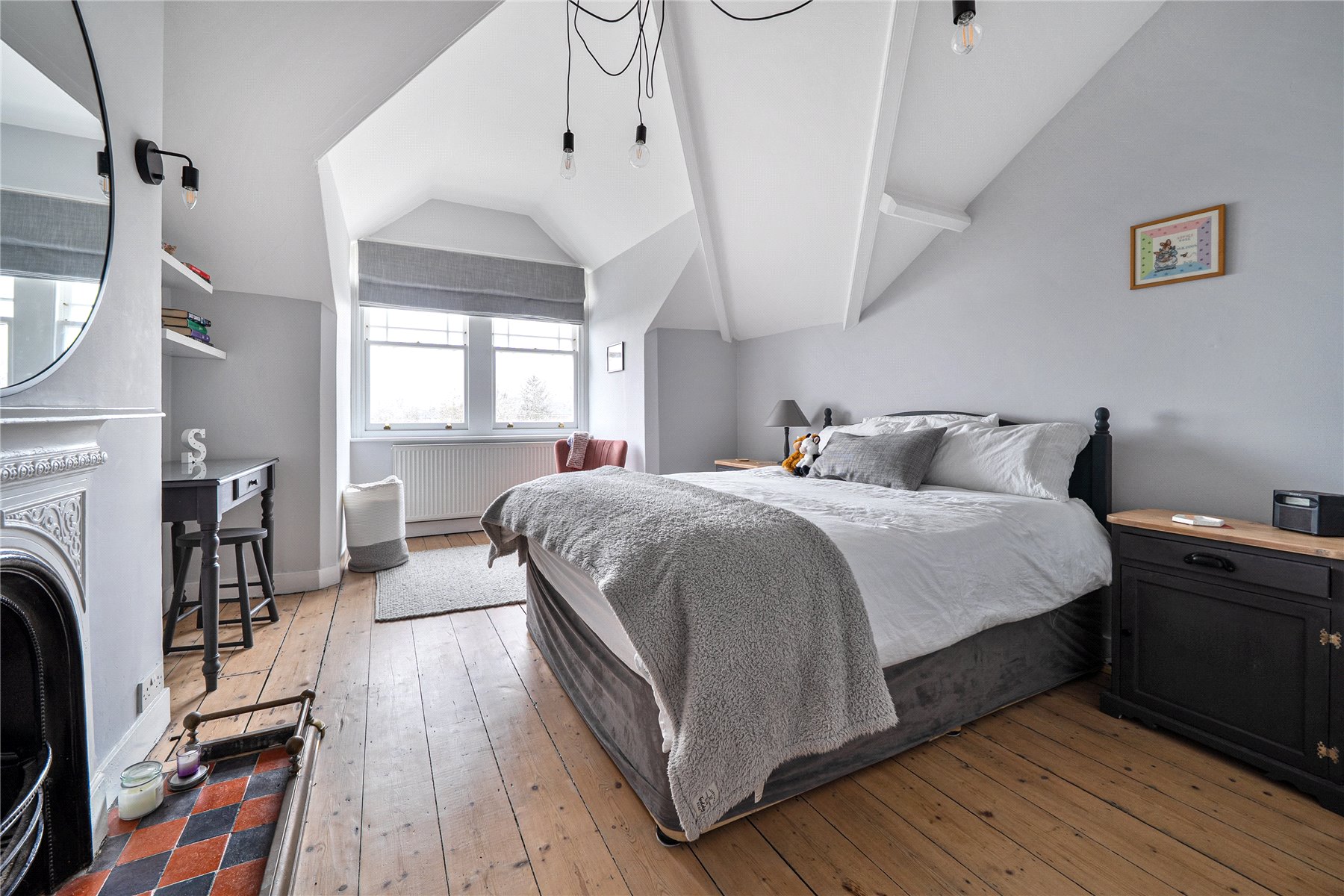 The second floor provides three additional double bedrooms, ideal for family, guests or flexible use, together with a contemporary bathroom. Throughout the upper floors, the balance between original proportions and modern finishes continues seamlessly, ensuring the home feels both characterful and current and from the windows, far reaching views across Guildford and beyond.